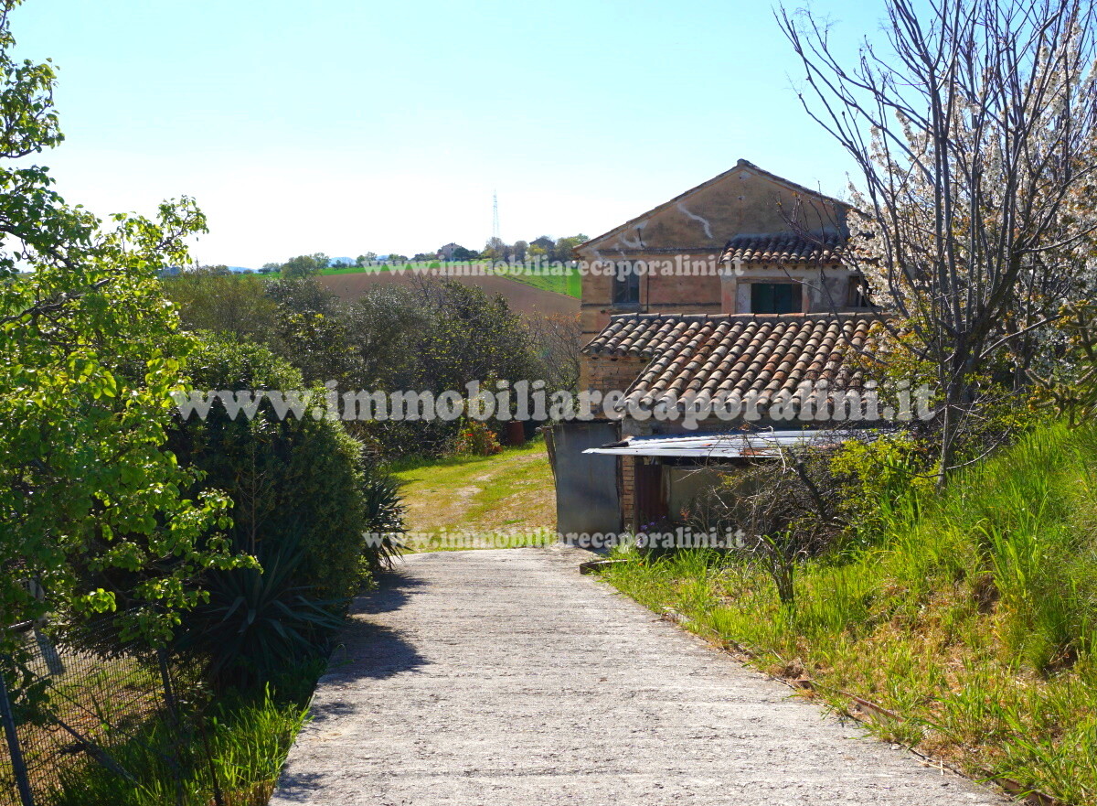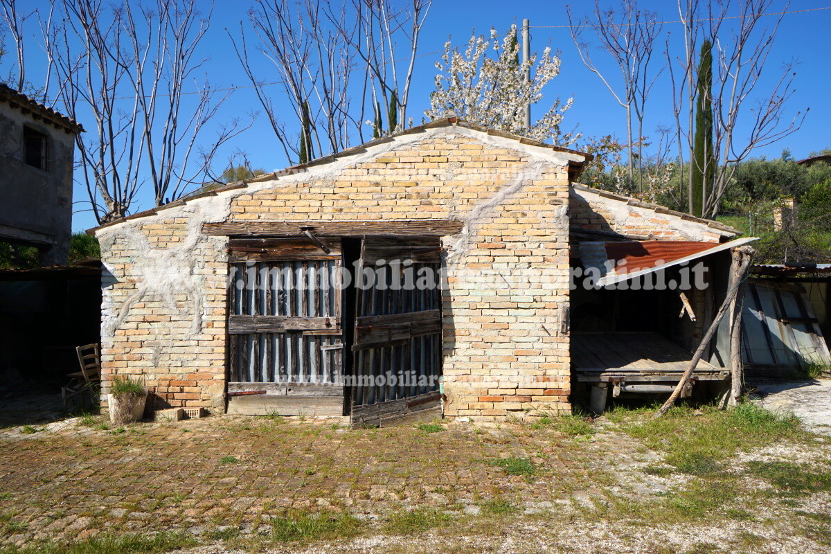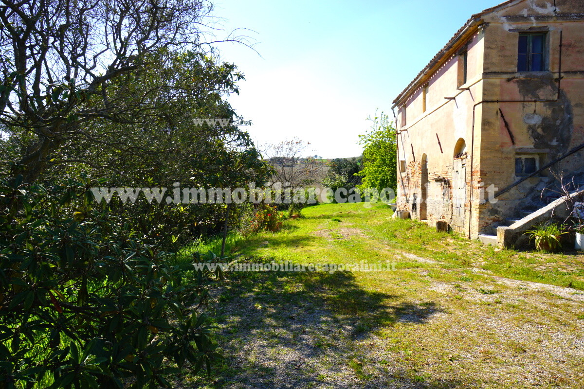 L’Agenzia Immobiliare Caporalini propone in vendita a Montecassiano (MC): casa colonica di circa 240 mq su due (2) piani, con abitazione al piano terra (T) di circa 120 mq e locali cantina/magazzino al piano primo seminterrato (S1) di circa 120 mq, più accessorio-esterno/magazzino (ex-casa rurale) di circa 216 mq ai piani terra (T) e primo (1), più accessorio-esterno/deposito-fienile di circa 60 mq al piano terra (T), più corte esclusiva esterna in parte adibita ad orto/giardino, in parte piantumata. L’immobile è composto da: