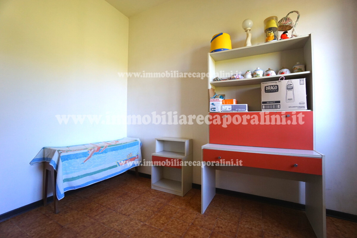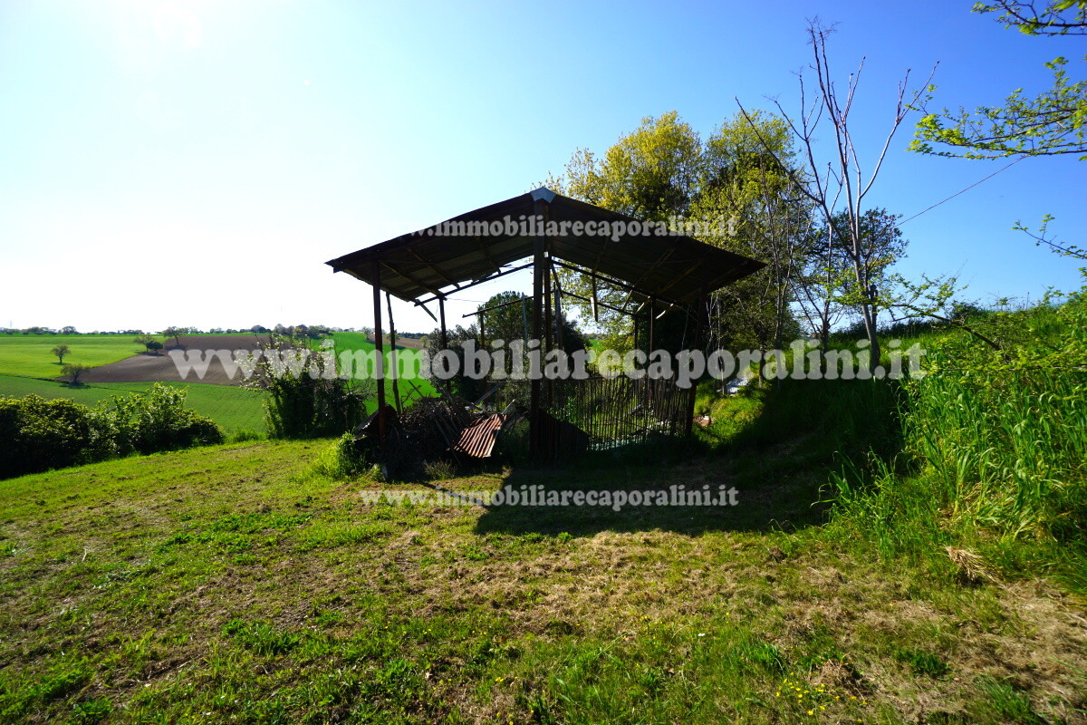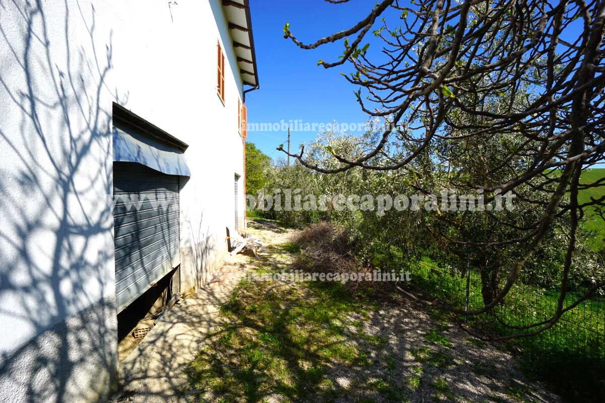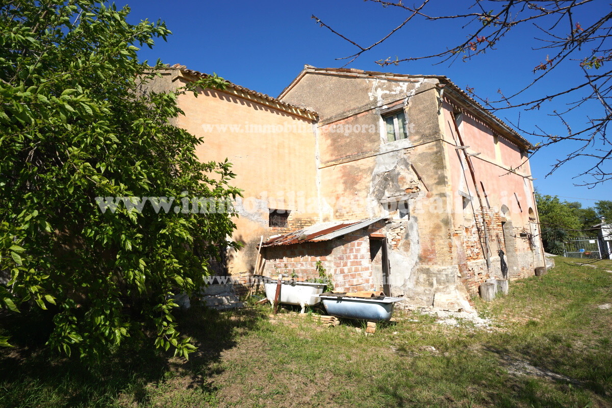 L’Agenzia Immobiliare Caporalini propone in vendita a Montecassiano (MC): casa colonica di circa 240 mq su due (2) piani, con abitazione al piano terra (T) di circa 120 mq e locali cantina/magazzino al piano primo seminterrato (S1) di circa 120 mq, più accessorio-esterno/magazzino (ex-casa rurale) di circa 216 mq ai piani terra (T) e primo (1), più accessorio-esterno/deposito-fienile di circa 60 mq al piano terra (T), più corte esclusiva esterna in parte adibita ad orto/giardino, in parte piantumata. L’immobile è composto da: