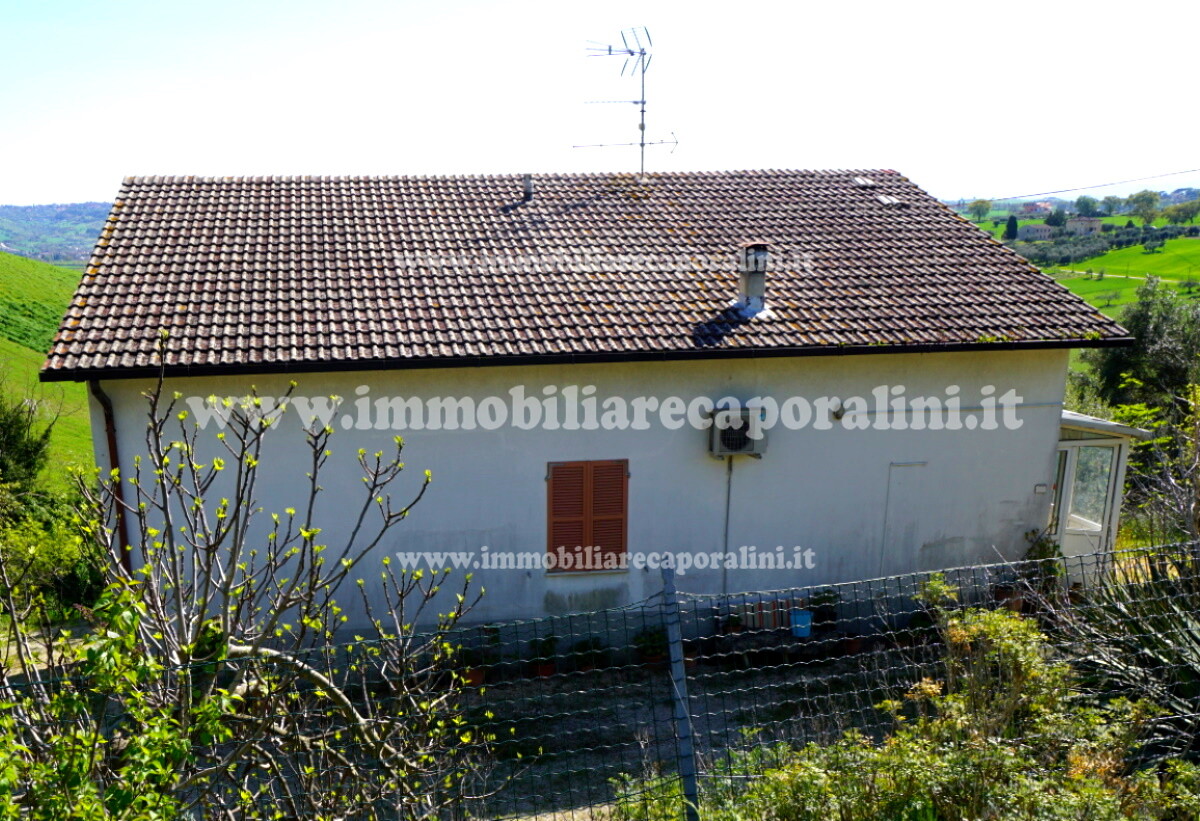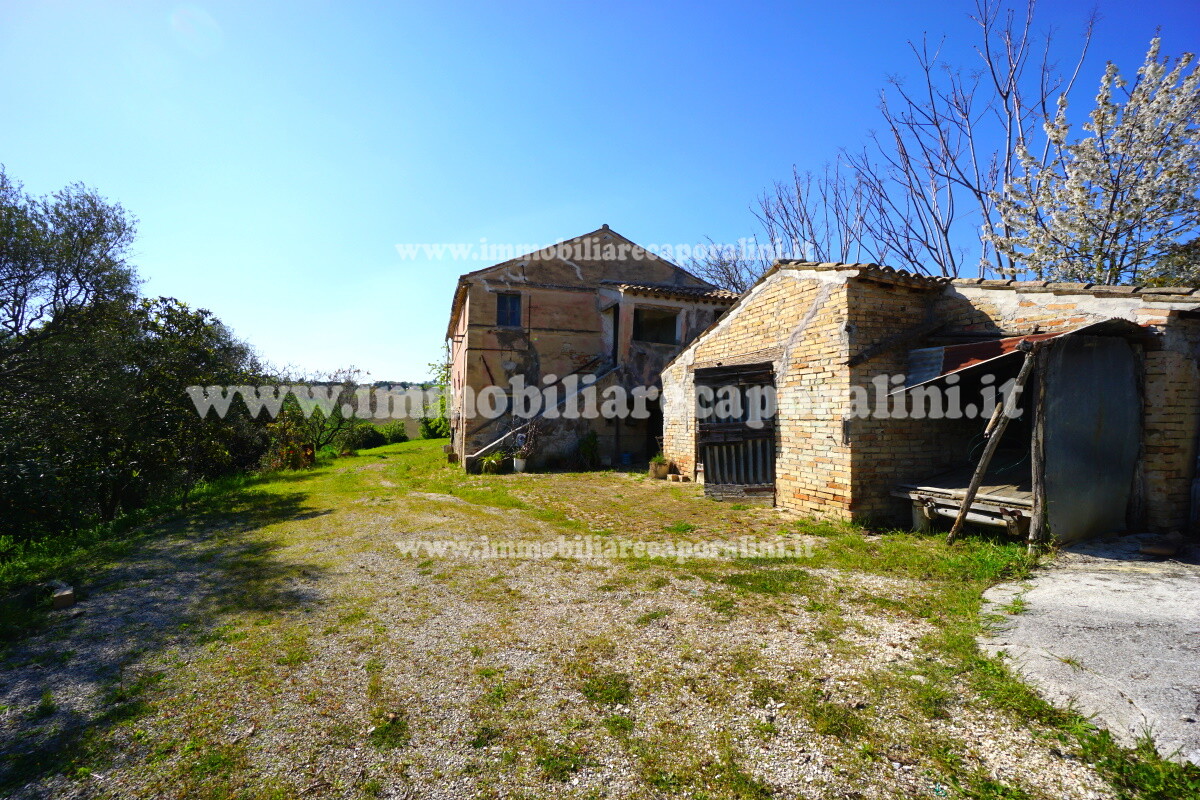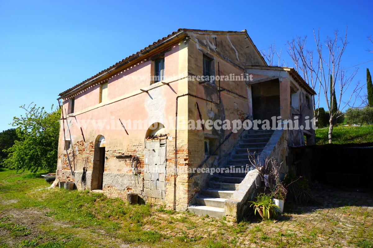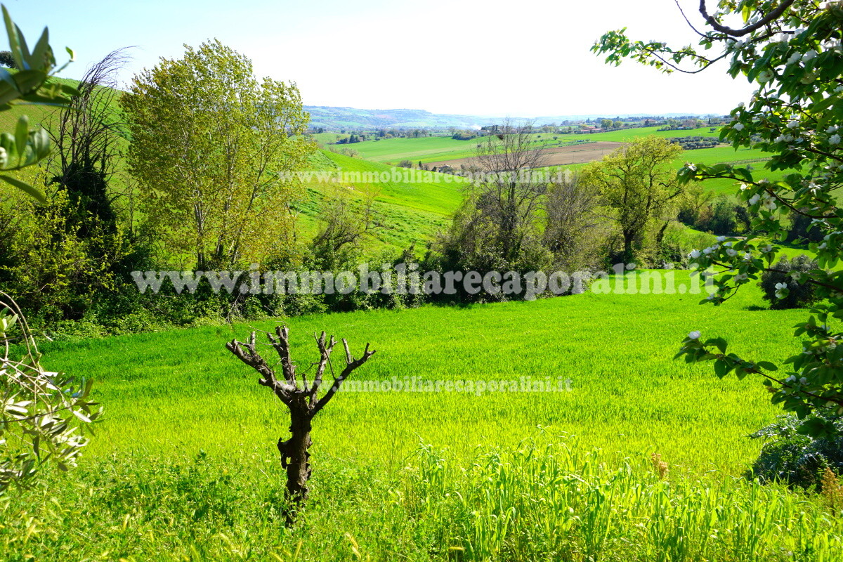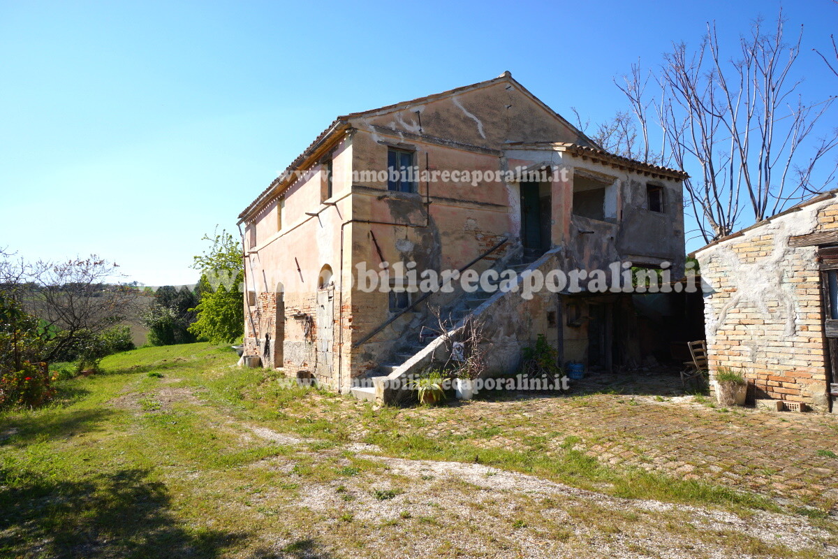 L’Agenzia Immobiliare Caporalini propone in vendita a Montecassiano (MC): casa colonica di circa 240 mq su due (2) piani, con abitazione al piano terra (T) di circa 120 mq e locali cantina/magazzino al piano primo seminterrato (S1) di circa 120 mq, più accessorio-esterno/magazzino (ex-casa rurale) di circa 216 mq ai piani terra (T) e primo (1), più accessorio-esterno/deposito-fienile di circa 60 mq al piano terra (T), più corte esclusiva esterna in parte adibita ad orto/giardino, in parte piantumata ed appezzamento di terreno agricolo semi-collinare di circa 53.000 mq comprensivo di una porzione adibita a vigneto. L’immobile è composto da: