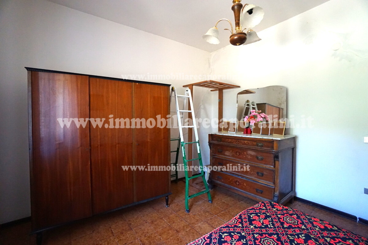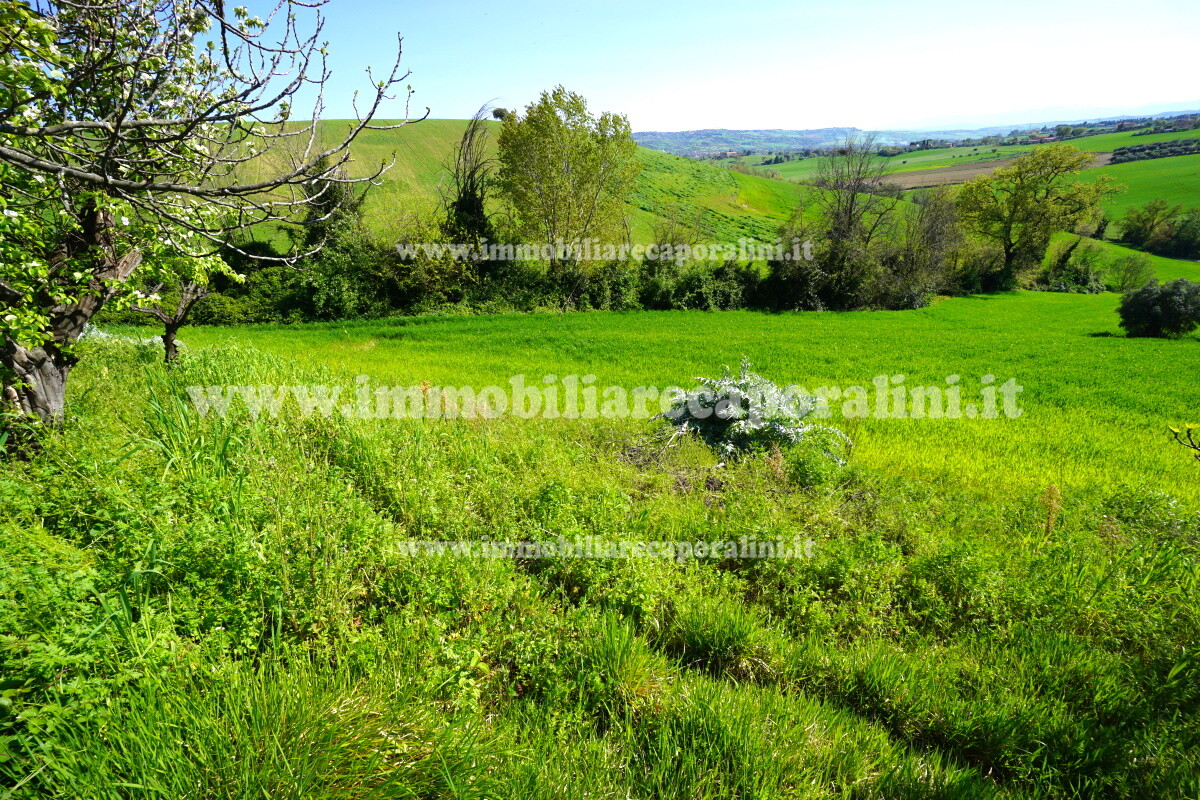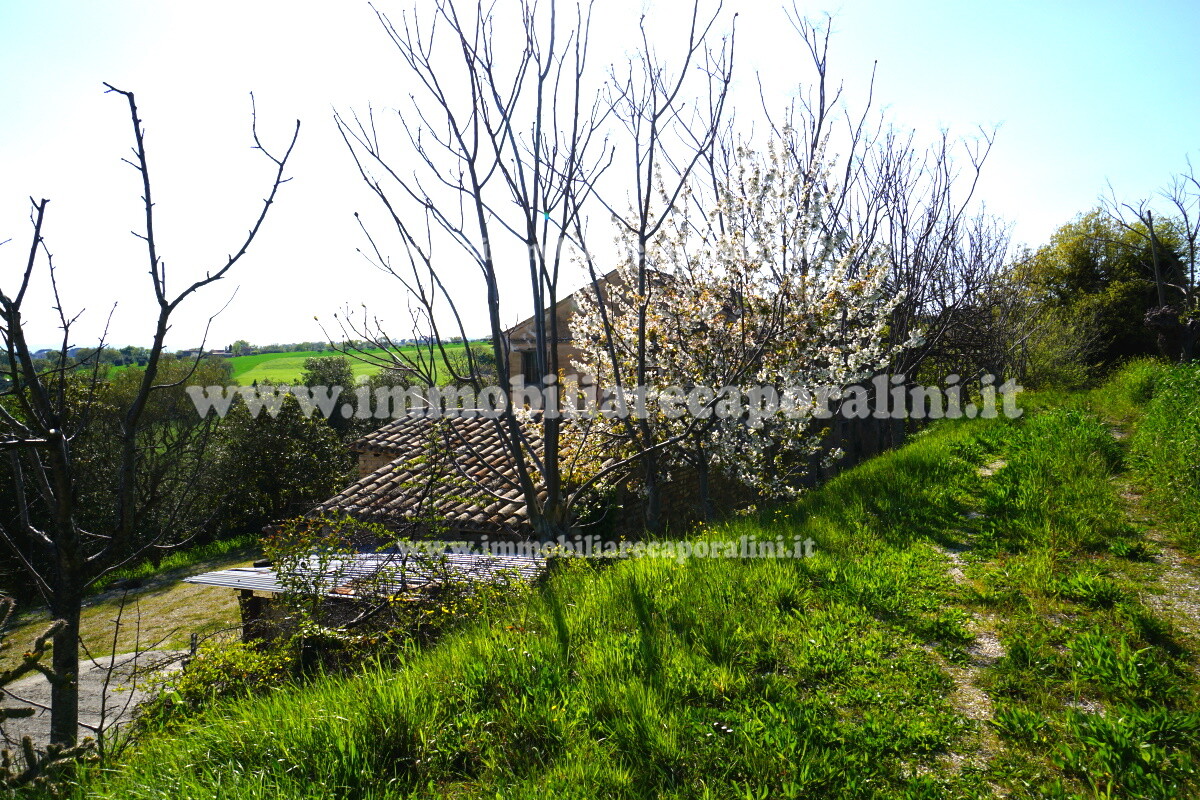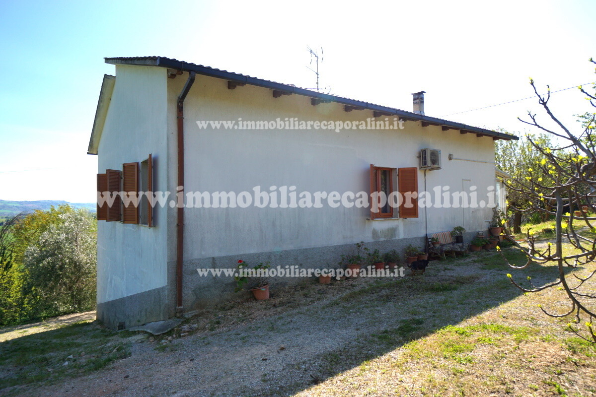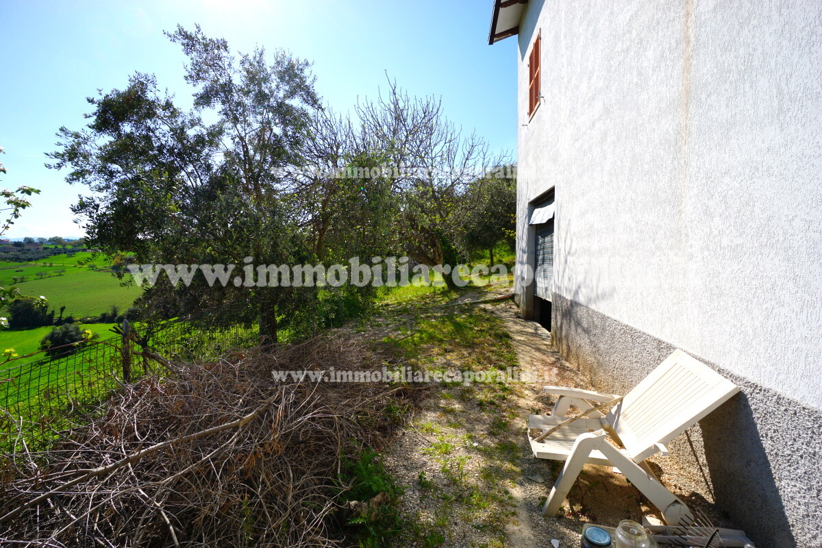 L’Agenzia Immobiliare Caporalini propone in vendita a Montecassiano (MC): casa colonica di circa 240 mq su due (2) piani, con abitazione al piano terra (T) di circa 120 mq e locali cantina/magazzino al piano primo seminterrato (S1) di circa 120 mq, più accessorio-esterno/magazzino (ex-casa rurale) di circa 216 mq ai piani terra (T) e primo (1), più accessorio-esterno/deposito-fienile di circa 60 mq al piano terra (T), più corte esclusiva esterna in parte adibita ad orto/giardino, in parte piantumata ed appezzamento di terreno agricolo semi-collinare di circa 53.000 mq comprensivo di una porzione adibita a vigneto. L’immobile è composto da: