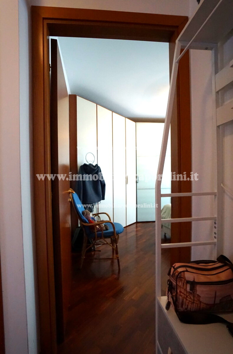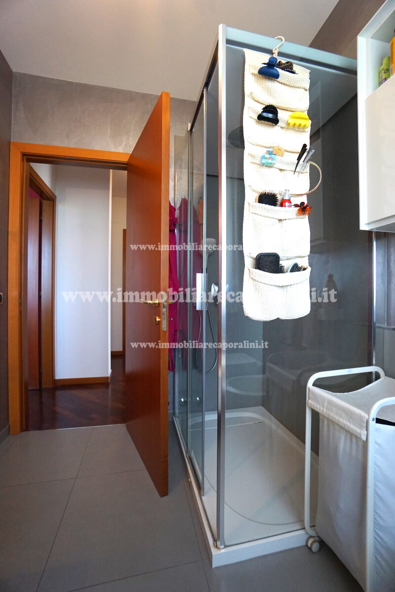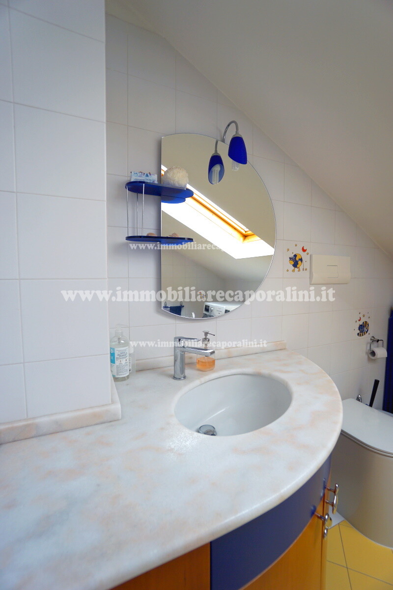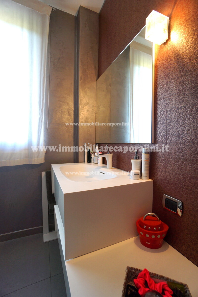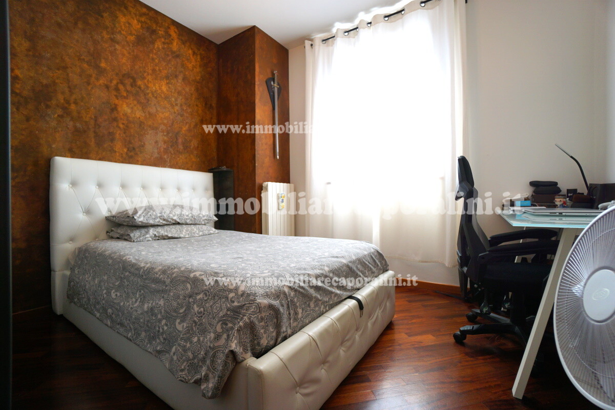 L’Agenzia Immobiliare Caporalini propone in vendita a Montecassiano (MC): zona Sambucheto, abitazione su 2 livelli caratterizzata da appartamento di circa 90 mq al piano secondo (2) con scala interna di accesso al locale sottotetto annesso di circa 50 mq al piano terzo (3) più garage di circa 30 mq al piano primo sottostrada (S1). L’immobile è composto da: ingresso, zona cucina-soggiorno (open-space) con balcone e caminetto a legna ventilato, disimpegno zona-notte, 1 camera matrimoniale con balcone, 2 camere singole, 2 bagni, scala interna di accesso al locale sottotetto pluriuso (completo di impianti, di buone finiture interne, comprensivo di tinello-cucina e di bagno/lavanderia e di ingresso indipendente) e garage. L’immobile è dotato di: impianto di riscaldamento termoautonomo con caldaia a condensazione e termosifoni; climatizzazione estate/inverno per la zona soggiorno-cucina; pavimentazioni e rivestimenti in ceramica/gres-porcellanato e parquet; infissi in legno con doppi-vetri termici e zanzariere; portoncino blindato; 2 bagni recentemente ristrutturati a nuovo; caminetto a legna ventilato canalizzato con bocchette per la diffusione di aria calda per la zona soggiorno-cucina e per la zona notte; tenda da sole per il balcone della zona soggiorno-cucina; stufa a legna nel locale sottotetto; impianto di allarme; finiture esterne in mattoncino faccia-vista e intonaco. L’immobile si trova in ottime condizioni. Contesto condominiale. Palazzina dotata di ascensore. Costruzione antisismica con struttura portante in cemento armato. Classe Energetica “D”, EPgl,nren 91,40 kWh/mq anno. Zona residenziale e servita. Occasione!