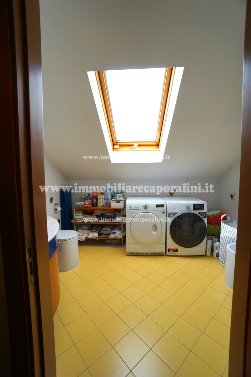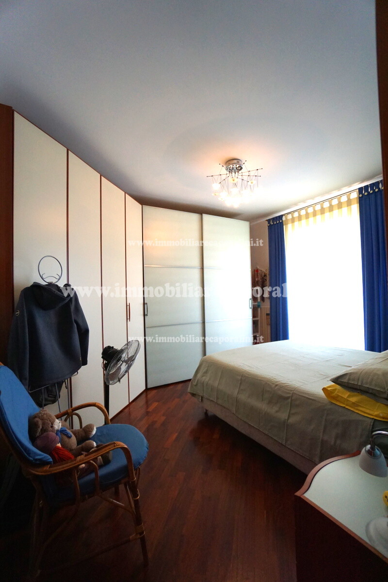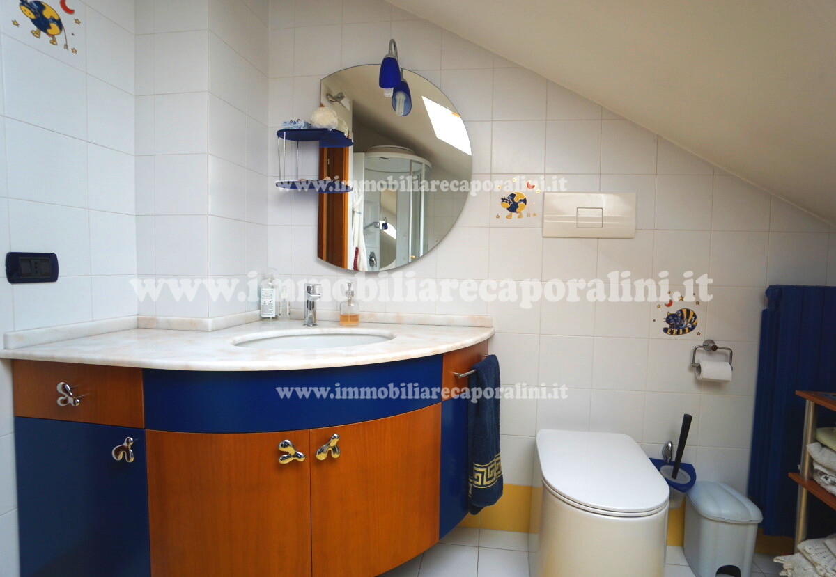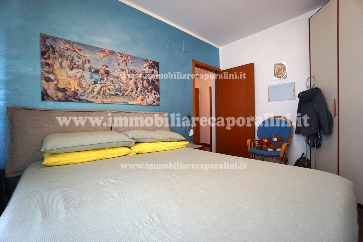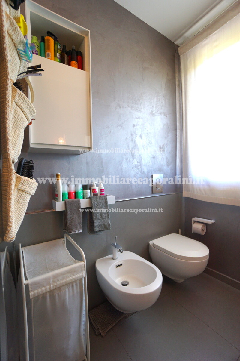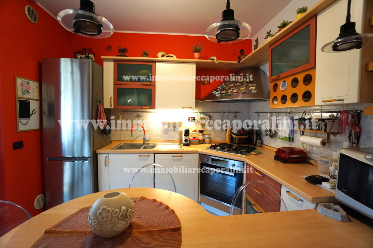 L’Agenzia Immobiliare Caporalini propone in vendita a Montecassiano (MC): zona Sambucheto, abitazione su 2 livelli caratterizzata da appartamento di circa 90 mq al piano secondo (2) con scala interna di accesso al locale sottotetto annesso di circa 50 mq al piano terzo (3) più garage di circa 30 mq al piano primo sottostrada (S1). L’immobile è composto da: ingresso, zona cucina-soggiorno (open-space) con balcone e caminetto a legna ventilato, disimpegno zona-notte, 1 camera matrimoniale con balcone, 2 camere singole, 2 bagni, scala interna di accesso al locale sottotetto pluriuso (completo di impianti, di buone finiture interne, comprensivo di tinello-cucina e di bagno/lavanderia e di ingresso indipendente) e garage. L’immobile è dotato di: impianto di riscaldamento termoautonomo con caldaia a condensazione e termosifoni; climatizzazione estate/inverno per la zona soggiorno-cucina; pavimentazioni e rivestimenti in ceramica/gres-porcellanato e parquet; infissi in legno con doppi-vetri termici e zanzariere; portoncino blindato; 2 bagni recentemente ristrutturati a nuovo; caminetto a legna ventilato canalizzato con bocchette per la diffusione di aria calda per la zona soggiorno-cucina e per la zona notte; tenda da sole per il balcone della zona soggiorno-cucina; stufa a legna nel locale sottotetto; impianto di allarme; finiture esterne in mattoncino faccia-vista e intonaco. L’immobile si trova in ottime condizioni. Contesto condominiale. Palazzina dotata di ascensore. Costruzione antisismica con struttura portante in cemento armato. Classe Energetica “D”, EPgl,nren 91,40 kWh/mq anno. Zona residenziale e servita. Occasione!