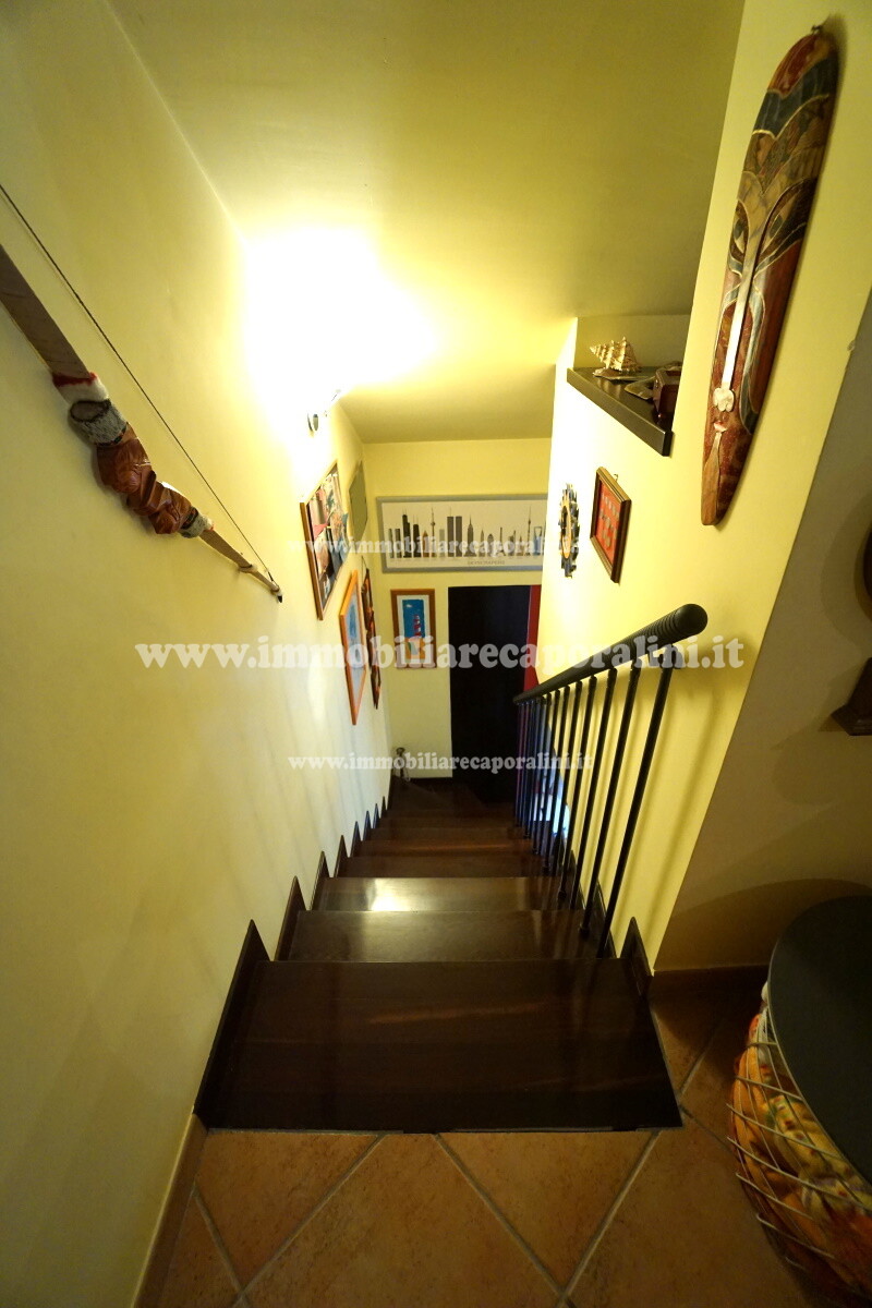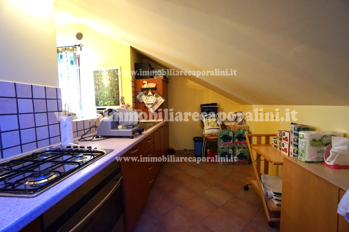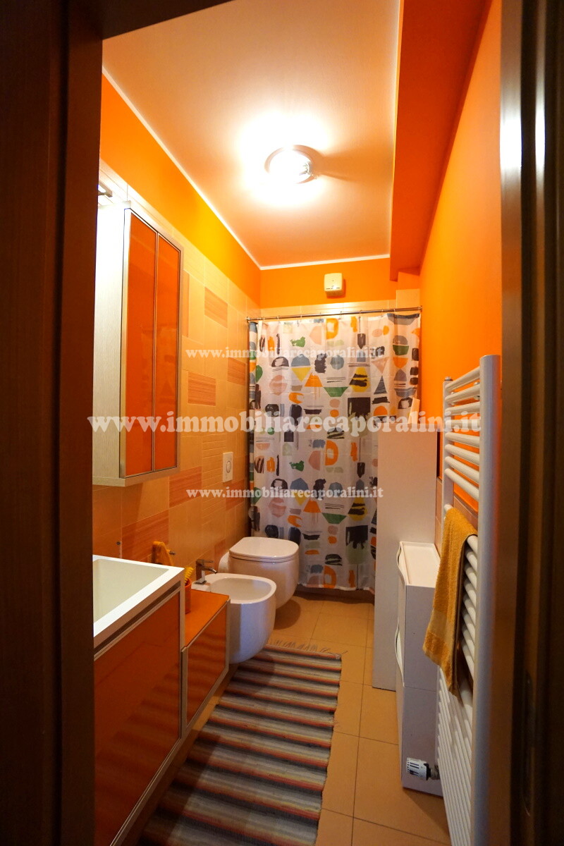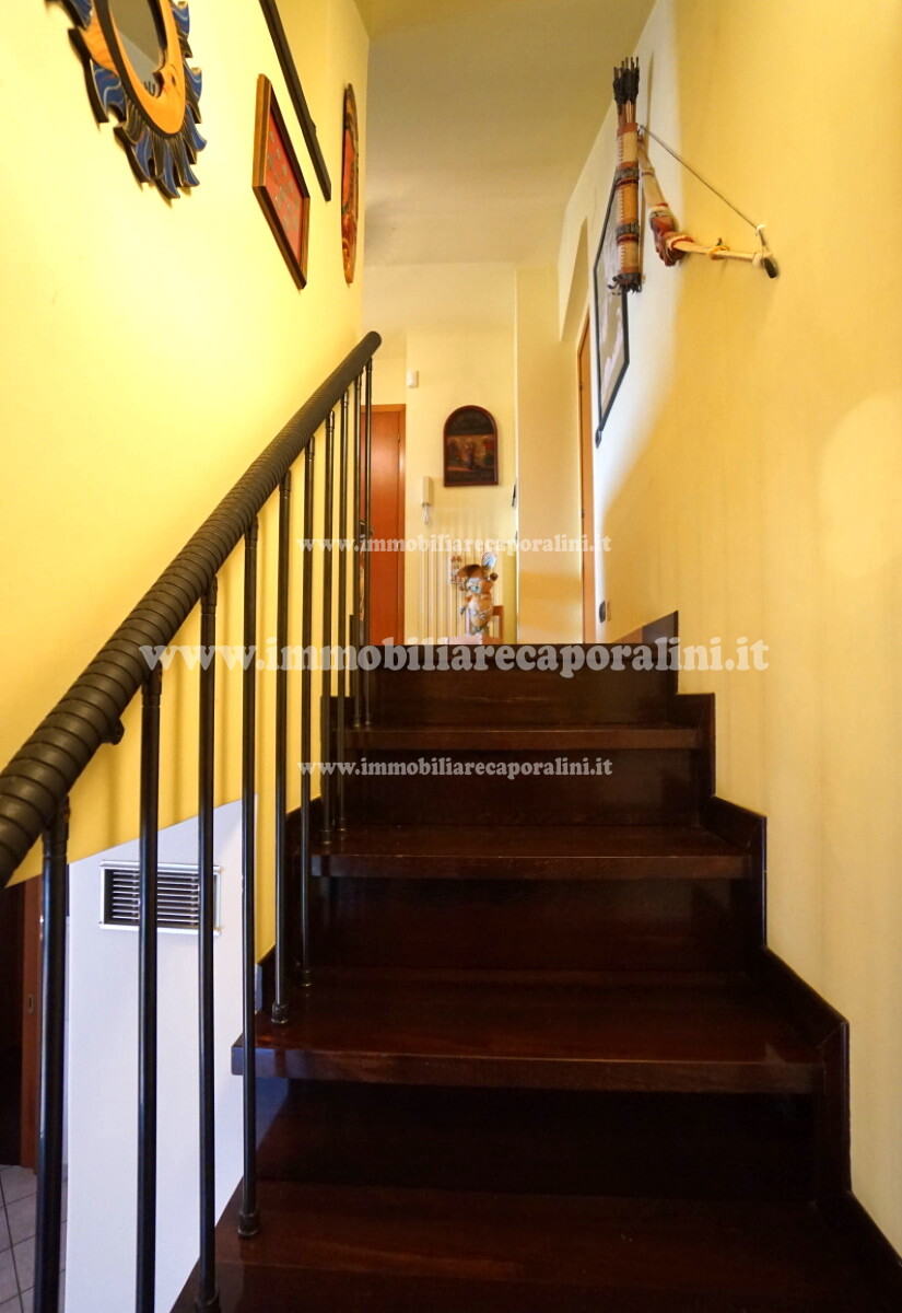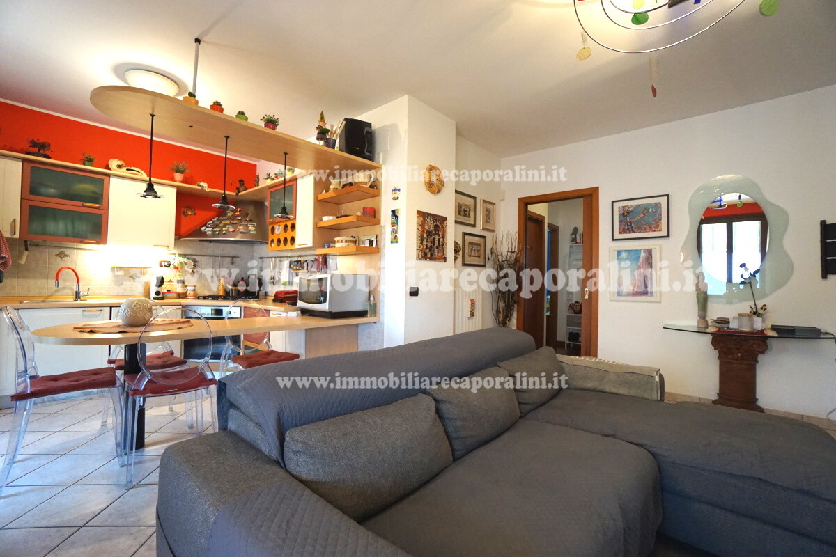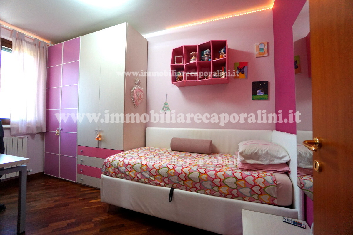 L’Agenzia Immobiliare Caporalini propone in vendita a Montecassiano (MC): zona Sambucheto, abitazione su 2 livelli caratterizzata da appartamento di circa 90 mq al piano secondo (2) con scala interna di accesso al locale sottotetto annesso di circa 50 mq al piano terzo (3) più garage di circa 30 mq al piano primo sottostrada (S1). L’immobile è composto da: ingresso, zona cucina-soggiorno (open-space) con balcone e caminetto a legna ventilato, disimpegno zona-notte, 1 camera matrimoniale con balcone, 2 camere singole, 2 bagni, scala interna di accesso al locale sottotetto pluriuso (completo di impianti, di buone finiture interne, comprensivo di tinello-cucina e di bagno/lavanderia e di ingresso indipendente) e garage. L’immobile è dotato di: impianto di riscaldamento termoautonomo con caldaia a condensazione e termosifoni; climatizzazione estate/inverno per la zona soggiorno-cucina; pavimentazioni e rivestimenti in ceramica/gres-porcellanato e parquet; infissi in legno con doppi-vetri termici e zanzariere; portoncino blindato; 2 bagni recentemente ristrutturati a nuovo; caminetto a legna ventilato canalizzato con bocchette per la diffusione di aria calda per la zona soggiorno-cucina e per la zona notte; tenda da sole per il balcone della zona soggiorno-cucina; stufa a legna nel locale sottotetto; impianto di allarme; finiture esterne in mattoncino faccia-vista e intonaco. L’immobile si trova in ottime condizioni. Contesto condominiale. Palazzina dotata di ascensore. Costruzione antisismica con struttura portante in cemento armato. Classe Energetica “D”, EPgl,nren 91,40 kWh/mq anno. Zona residenziale e servita. Occasione!