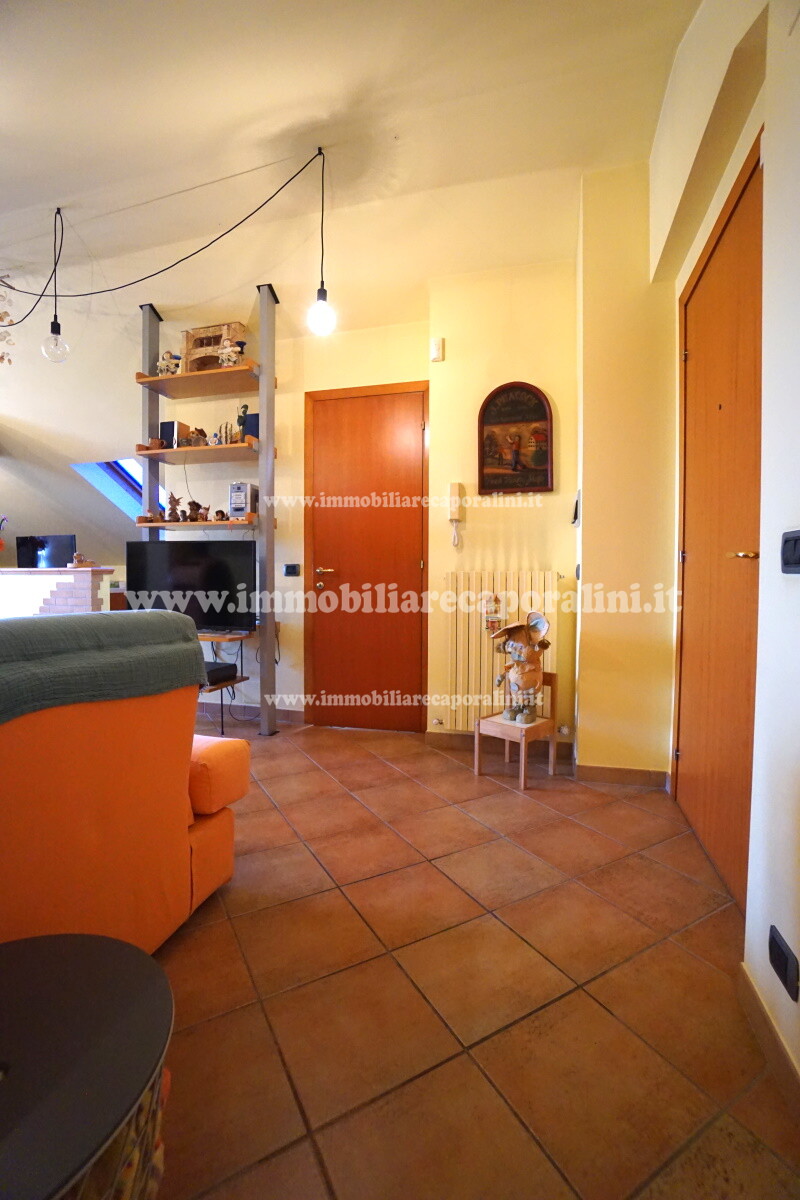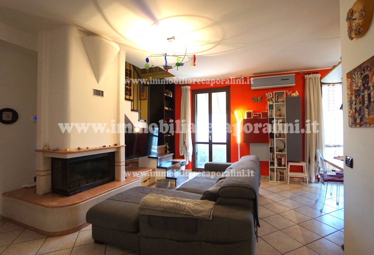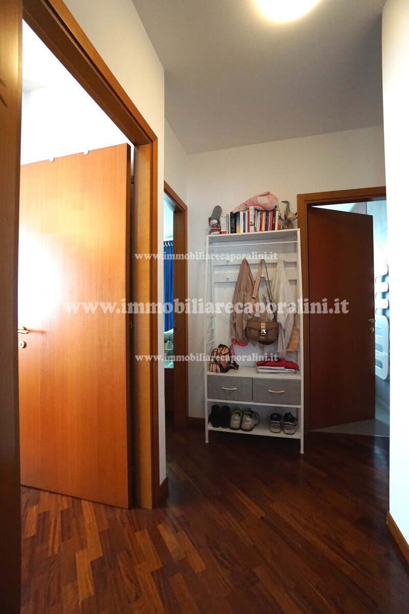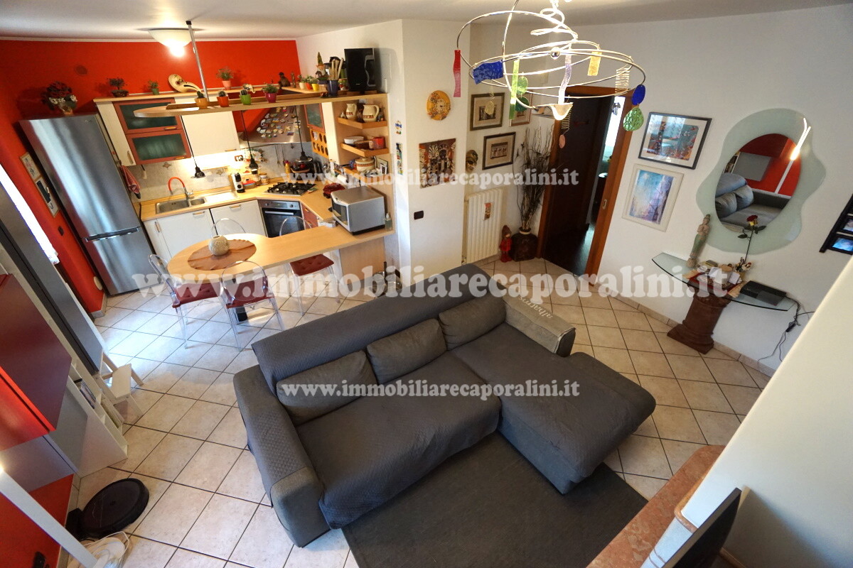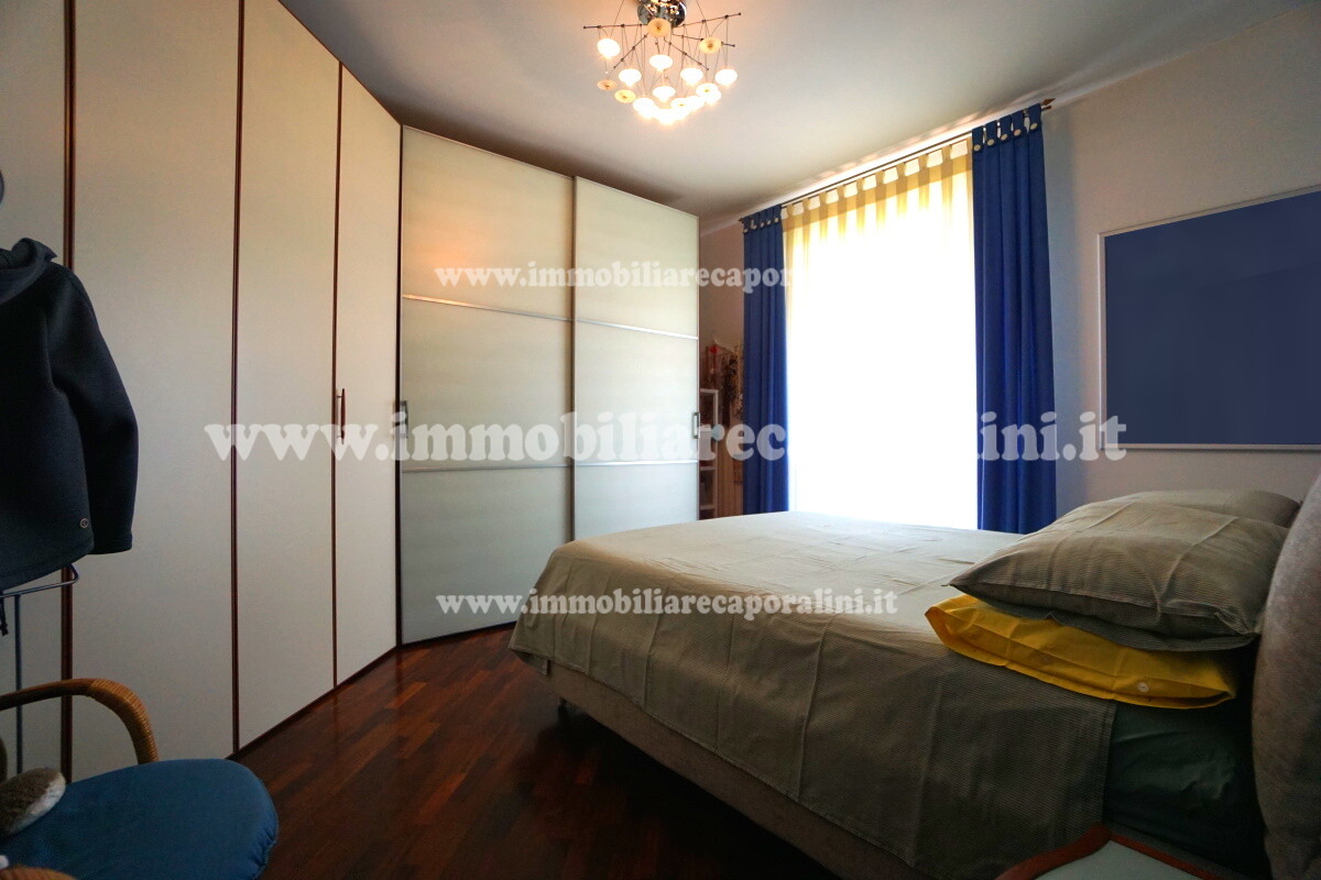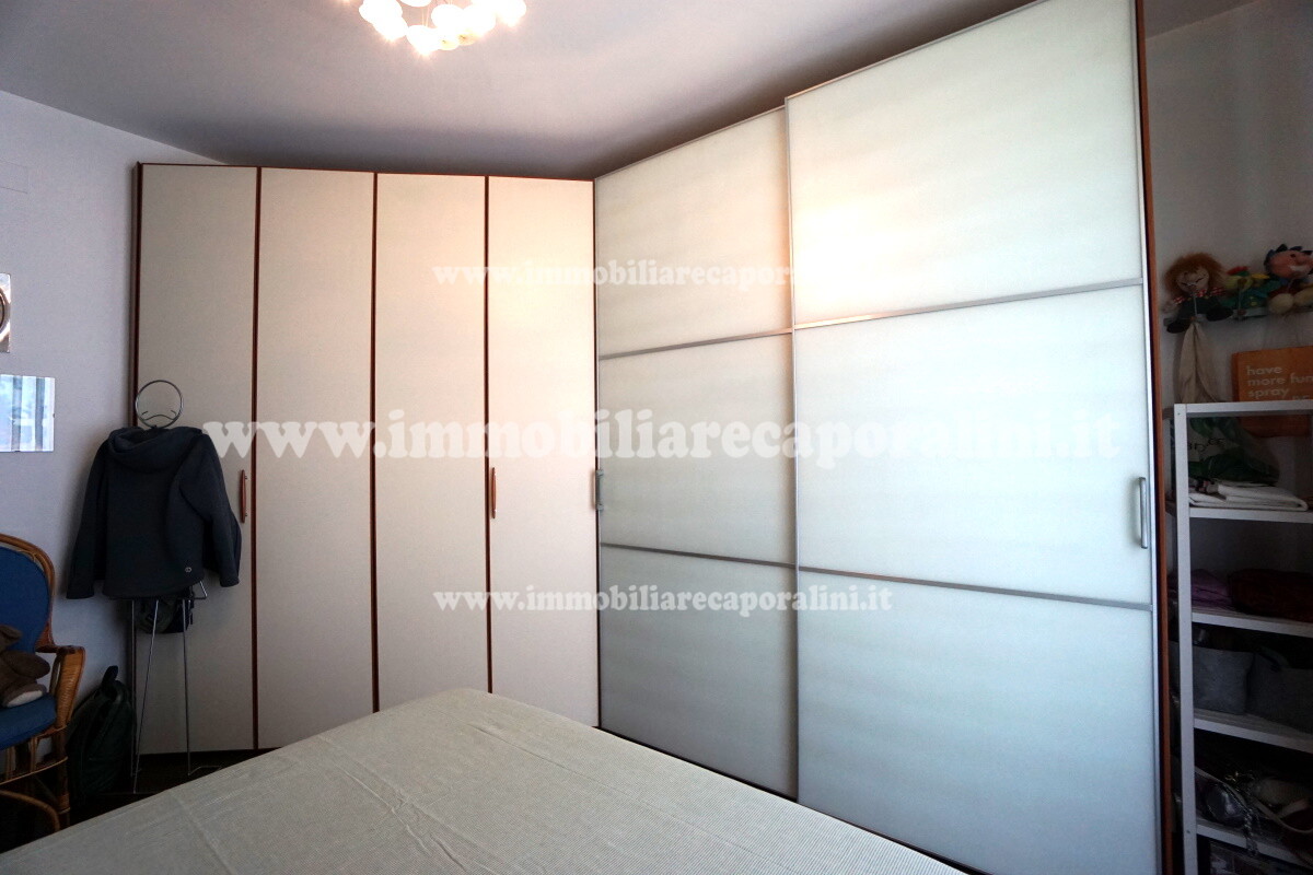 L’Agenzia Immobiliare Caporalini propone in vendita a Montecassiano (MC): zona Sambucheto, abitazione su 2 livelli caratterizzata da appartamento di circa 90 mq al piano secondo (2) con scala interna di accesso al locale sottotetto annesso di circa 50 mq al piano terzo (3) più garage di circa 30 mq al piano primo sottostrada (S1). L’immobile è composto da: ingresso, zona cucina-soggiorno (open-space) con balcone e caminetto a legna ventilato, disimpegno zona-notte, 1 camera matrimoniale con balcone, 2 camere singole, 2 bagni, scala interna di accesso al locale sottotetto pluriuso (completo di impianti, di buone finiture interne, comprensivo di tinello-cucina e di bagno/lavanderia e di ingresso indipendente) e garage. L’immobile è dotato di: impianto di riscaldamento termoautonomo con caldaia a condensazione e termosifoni; climatizzazione estate/inverno per la zona soggiorno-cucina; pavimentazioni e rivestimenti in ceramica/gres-porcellanato e parquet; infissi in legno con doppi-vetri termici e zanzariere; portoncino blindato; 2 bagni recentemente ristrutturati a nuovo; caminetto a legna ventilato canalizzato con bocchette per la diffusione di aria calda per la zona soggiorno-cucina e per la zona notte; tenda da sole per il balcone della zona soggiorno-cucina; stufa a legna nel locale sottotetto; impianto di allarme; finiture esterne in mattoncino faccia-vista e intonaco. L’immobile si trova in ottime condizioni. Contesto condominiale. Palazzina dotata di ascensore. Costruzione antisismica con struttura portante in cemento armato. Classe Energetica “D”, EPgl,nren 91,40 kWh/mq anno. Zona residenziale e servita. Occasione!
