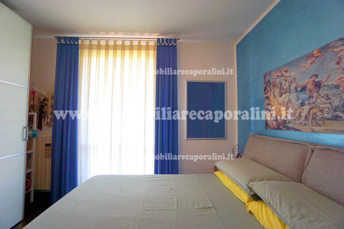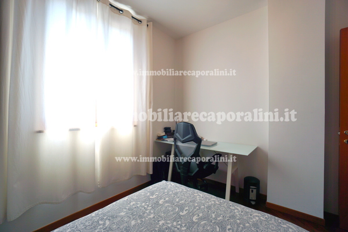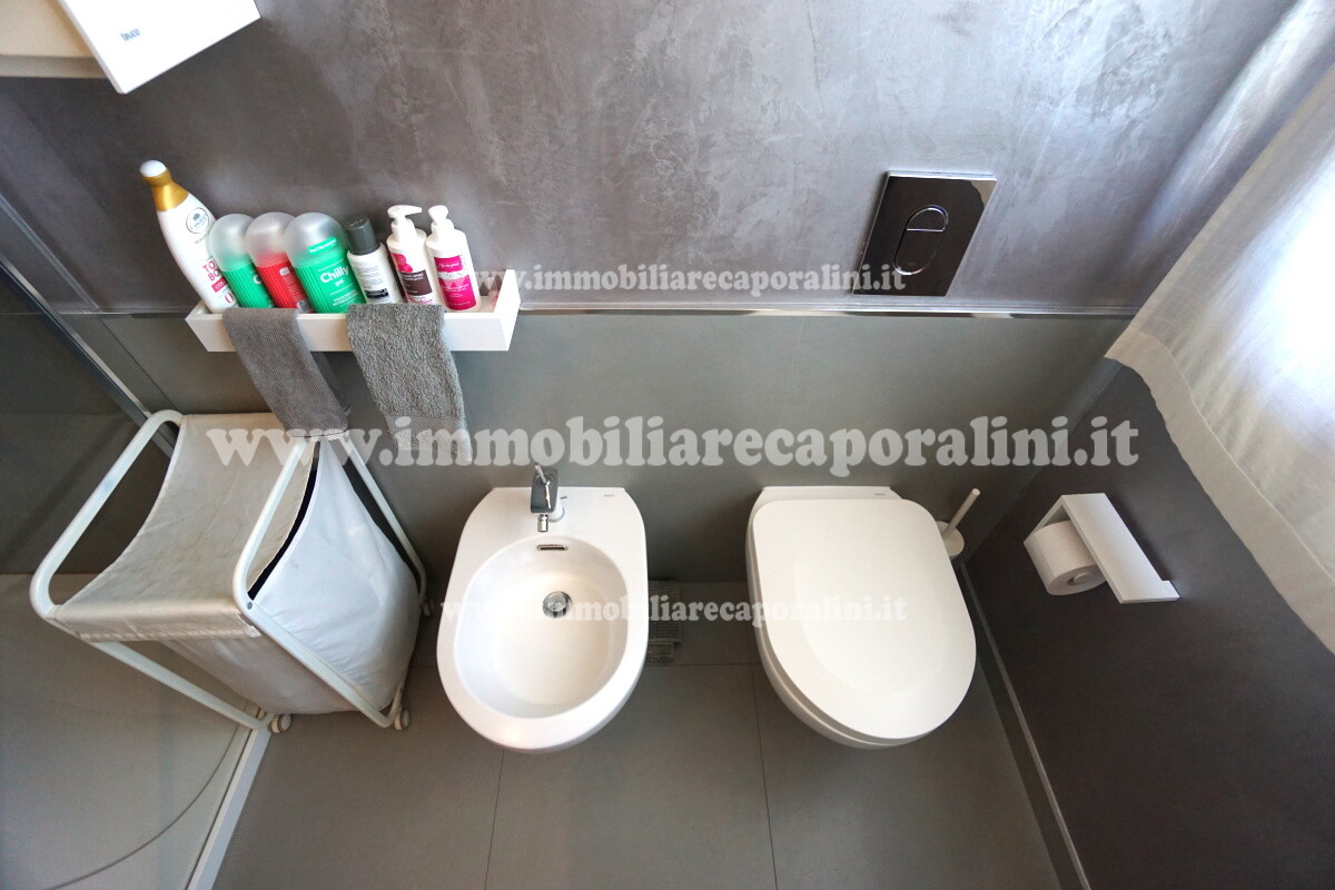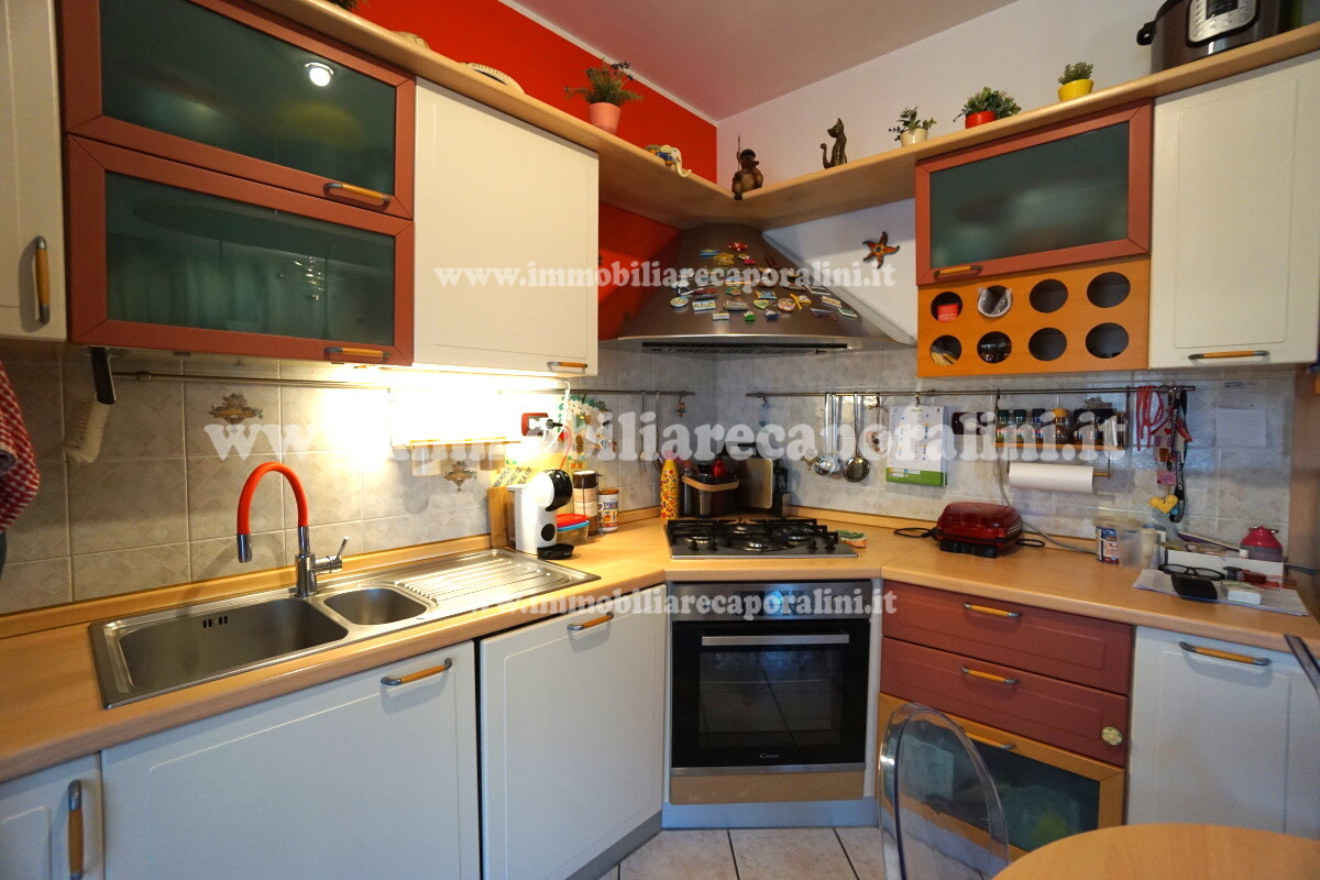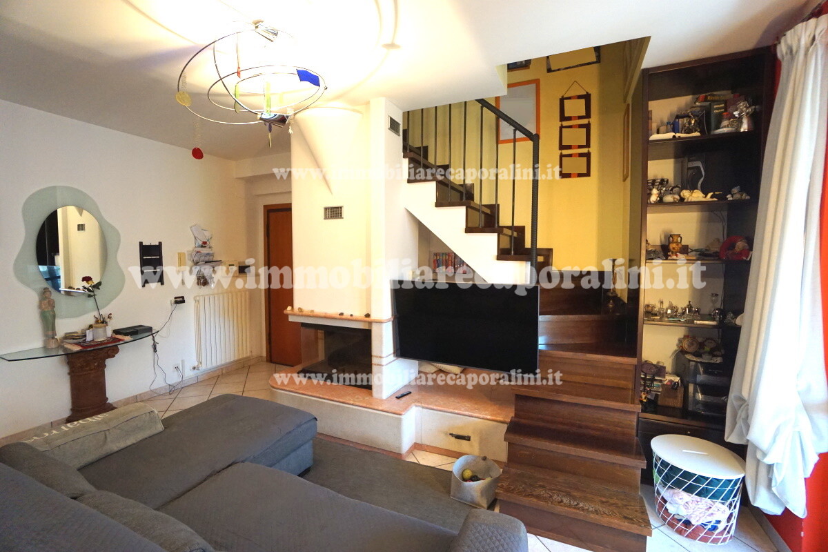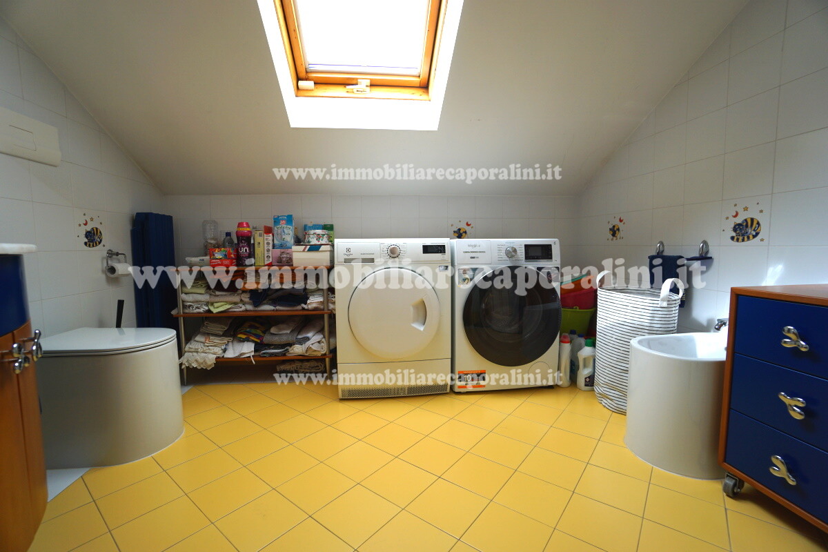 L’Agenzia Immobiliare Caporalini propone in vendita a Montecassiano (MC): zona Sambucheto, abitazione su 2 livelli caratterizzata da appartamento di circa 90 mq al piano secondo (2) con scala interna di accesso al locale sottotetto annesso di circa 50 mq al piano terzo (3) più garage di circa 30 mq al piano primo sottostrada (S1). L’immobile è composto da: ingresso, zona cucina-soggiorno (open-space) con balcone e caminetto a legna ventilato, disimpegno zona-notte, 1 camera matrimoniale con balcone, 2 camere singole, 2 bagni, scala interna di accesso al locale sottotetto pluriuso (completo di impianti, di buone finiture interne, comprensivo di tinello-cucina e di bagno/lavanderia e di ingresso indipendente) e garage. L’immobile è dotato di: impianto di riscaldamento termoautonomo con caldaia a condensazione e termosifoni; climatizzazione estate/inverno per la zona soggiorno-cucina; pavimentazioni e rivestimenti in ceramica/gres-porcellanato e parquet; infissi in legno con doppi-vetri termici e zanzariere; portoncino blindato; 2 bagni recentemente ristrutturati a nuovo; caminetto a legna ventilato canalizzato con bocchette per la diffusione di aria calda per la zona soggiorno-cucina e per la zona notte; tenda da sole per il balcone della zona soggiorno-cucina; stufa a legna nel locale sottotetto; impianto di allarme; finiture esterne in mattoncino faccia-vista e intonaco. L’immobile si trova in ottime condizioni. Contesto condominiale. Palazzina dotata di ascensore. Costruzione antisismica con struttura portante in cemento armato. Classe Energetica “D”, EPgl,nren 91,40 kWh/mq anno. Zona residenziale e servita. Occasione!