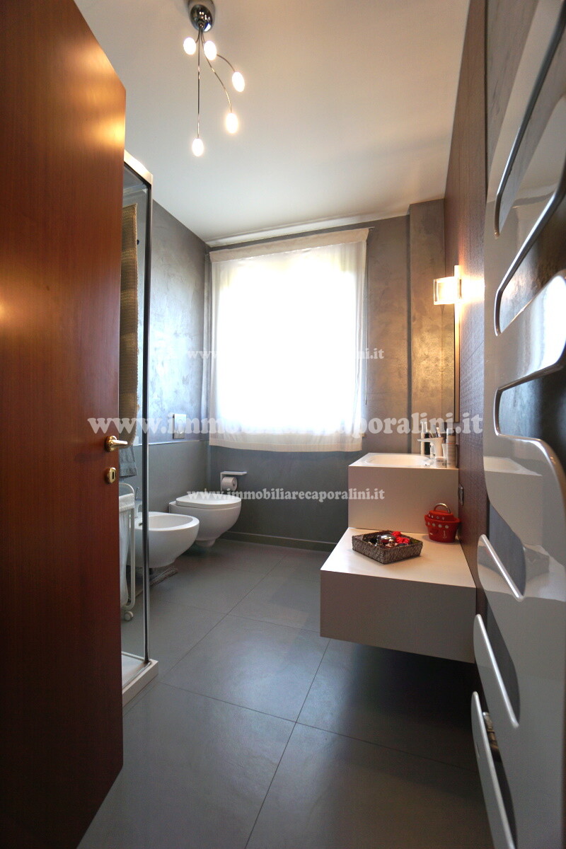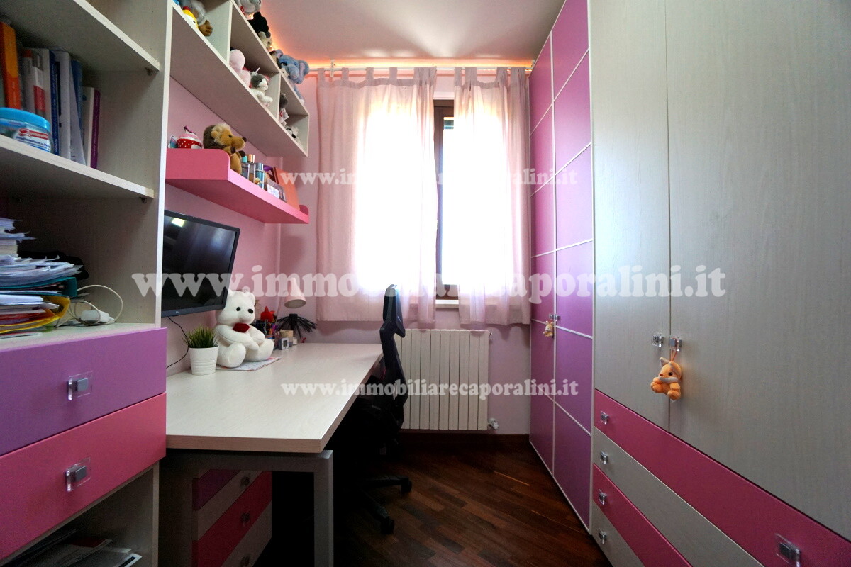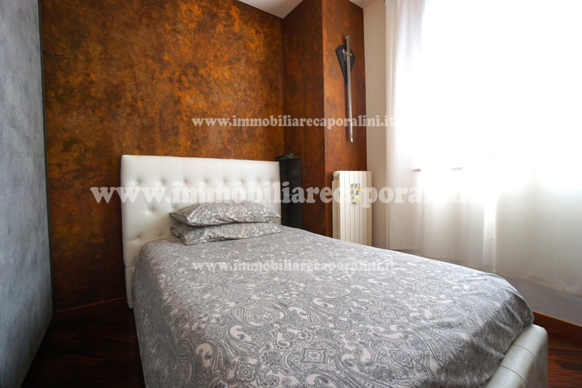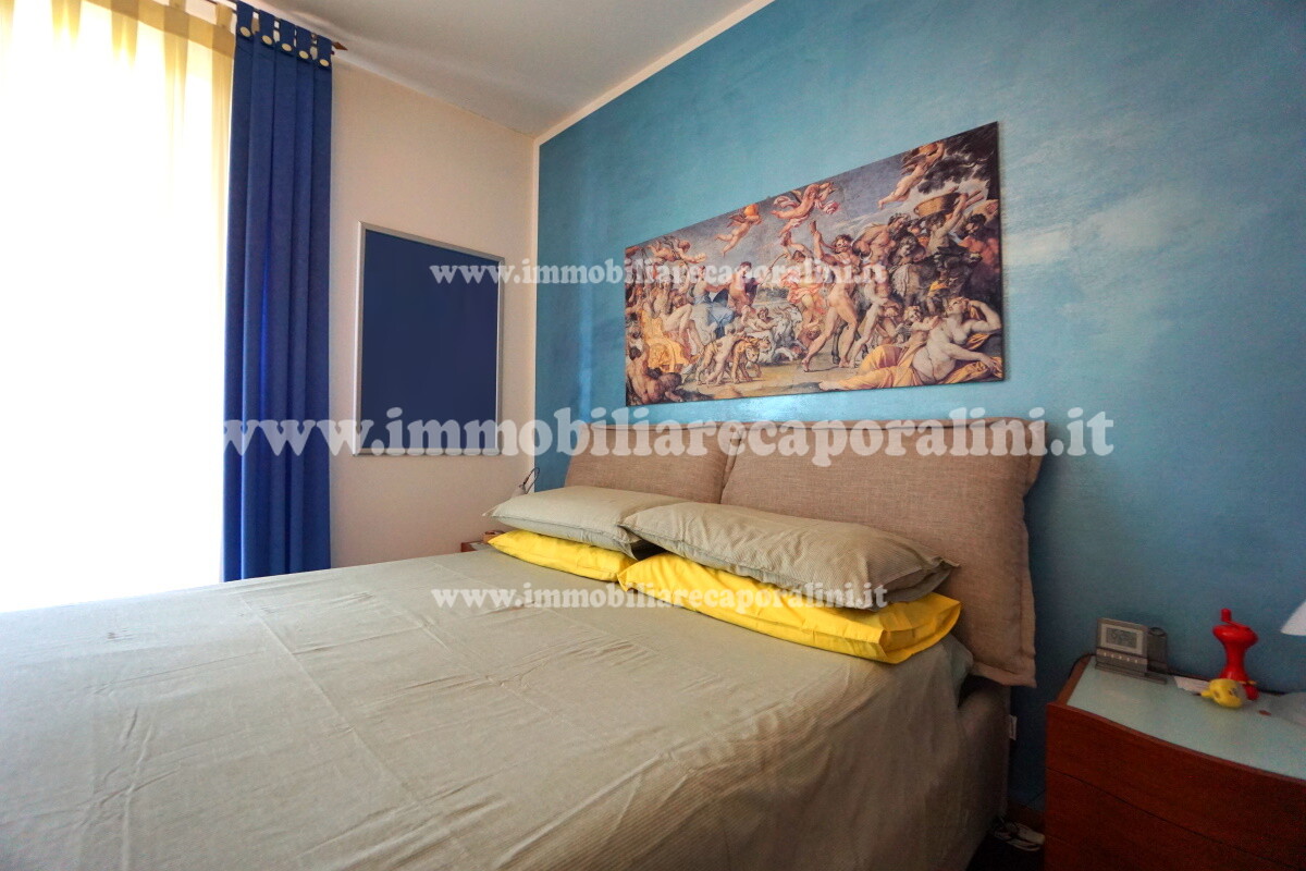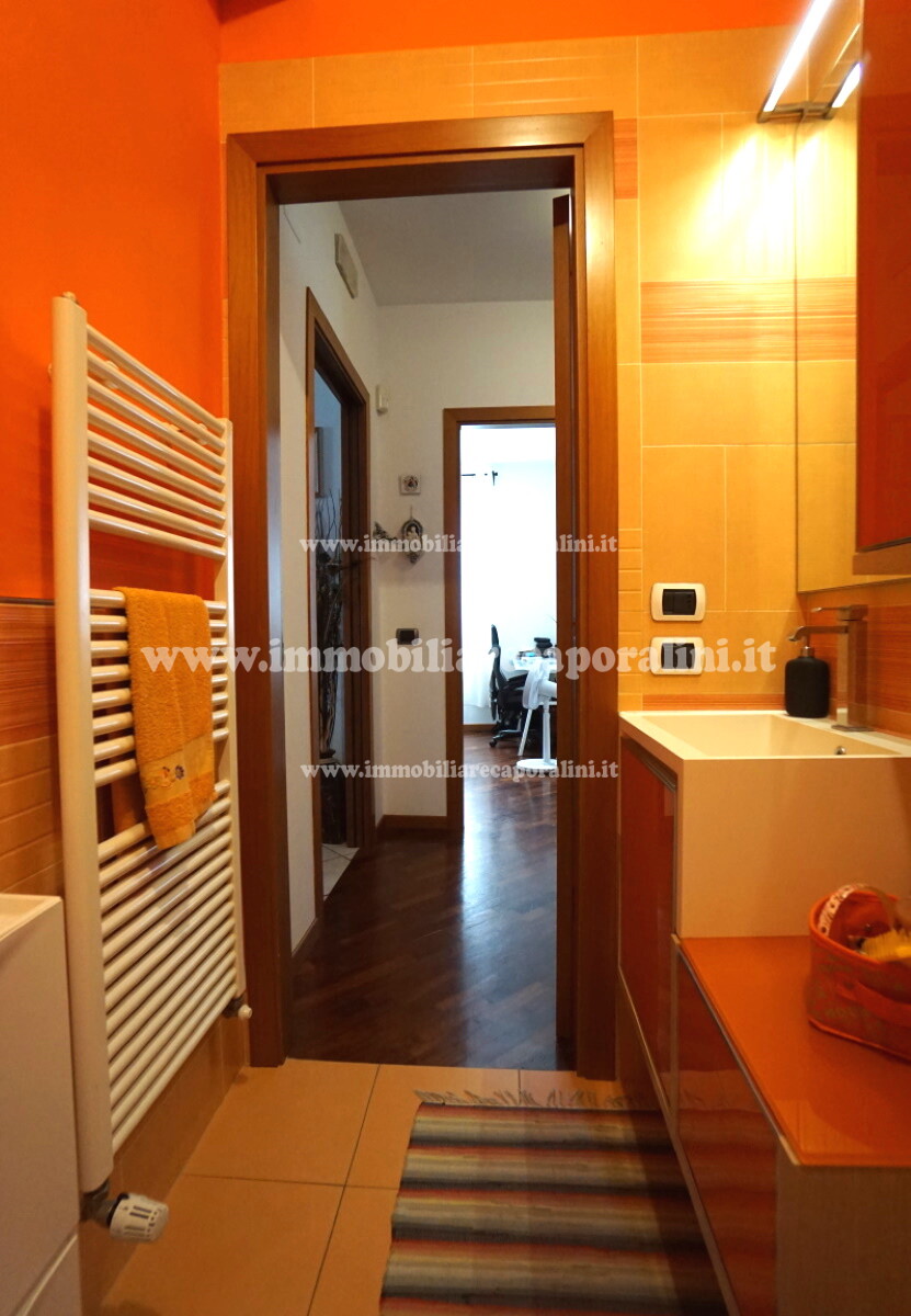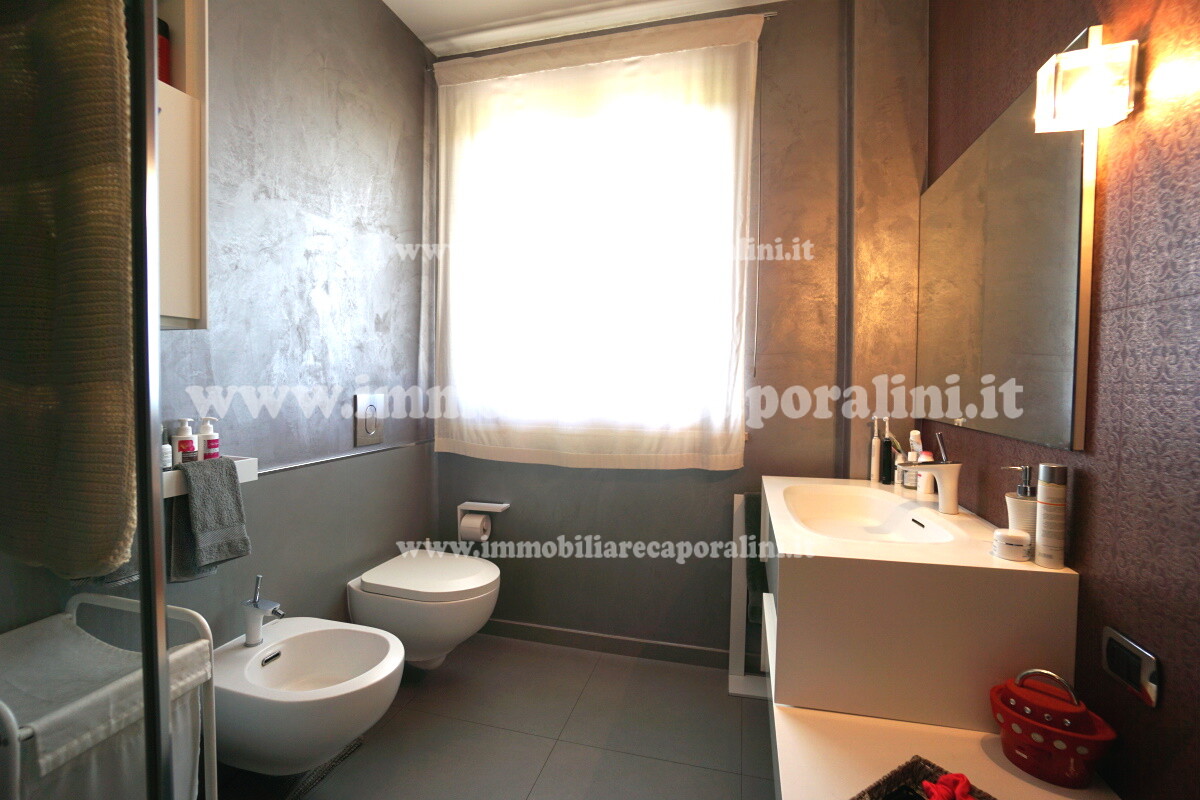L’Agenzia Immobiliare Caporalini propone in vendita a Montecassiano (MC): zona Sambucheto, abitazione su 2 livelli caratterizzata da appartamento di circa 90 mq al piano secondo (2) con scala interna di accesso al locale sottotetto annesso di circa 50 mq al piano terzo (3) più garage di circa 30 mq al piano primo sottostrada (S1). L’immobile è composto da: ingresso, zona cucina-soggiorno (open-space) con balcone e caminetto a legna ventilato, disimpegno zona-notte, 1 camera matrimoniale con balcone, 2 camere singole, 2 bagni, scala interna di accesso al locale sottotetto pluriuso (completo di impianti, di buone finiture interne, comprensivo di tinello-cucina e di bagno/lavanderia e di ingresso indipendente) e garage. L’immobile è dotato di: impianto di riscaldamento termoautonomo con caldaia a condensazione e termosifoni; climatizzazione estate/inverno per la zona soggiorno-cucina; pavimentazioni e rivestimenti in ceramica/gres-porcellanato e parquet; infissi in legno con doppi-vetri termici e zanzariere; portoncino blindato; 2 bagni recentemente ristrutturati a nuovo; caminetto a legna ventilato canalizzato con bocchette per la diffusione di aria calda per la zona soggiorno-cucina e per la zona notte; tenda da sole per il balcone della zona soggiorno-cucina; stufa a legna nel locale sottotetto; impianto di allarme; finiture esterne in mattoncino faccia-vista e intonaco. L’immobile si trova in ottime condizioni. Contesto condominiale. Palazzina dotata di ascensore. Costruzione antisismica con struttura portante in cemento armato. Classe Energetica “D”, EPgl,nren 91,40 kWh/mq anno. Zona residenziale e servita. Occasione!