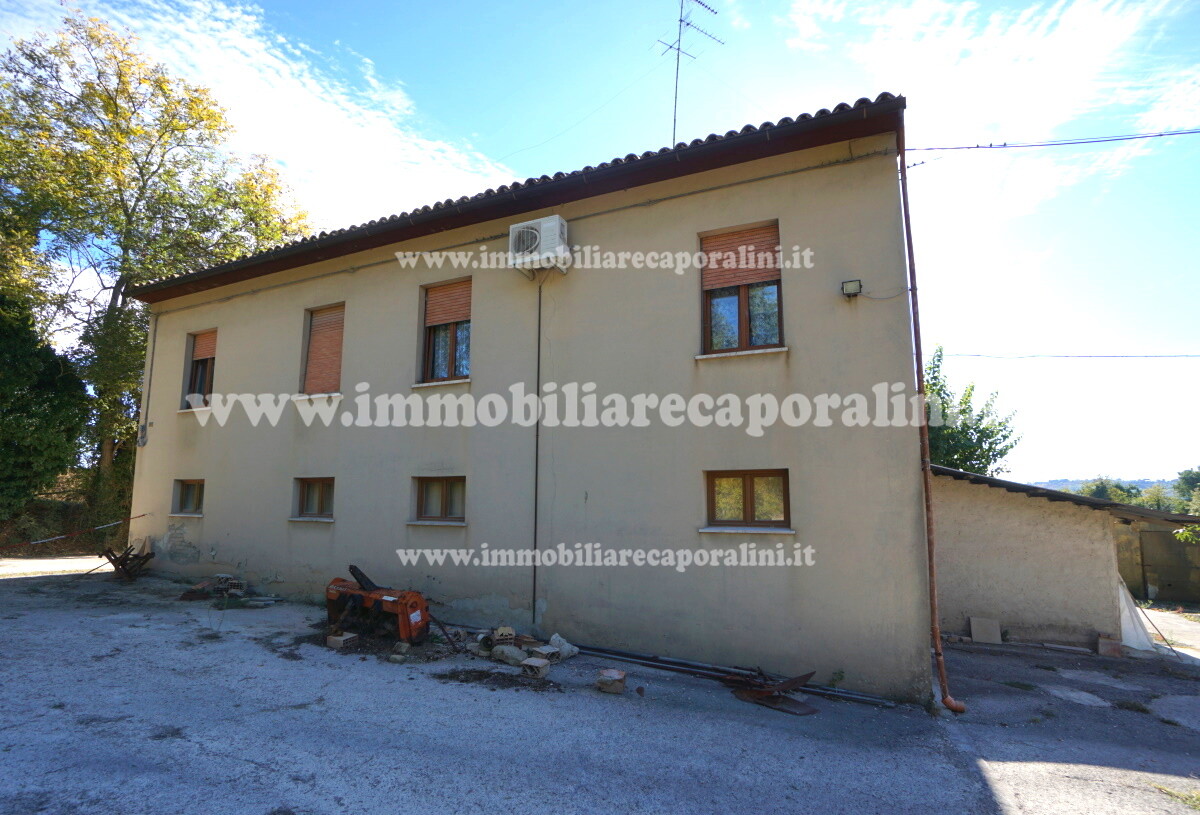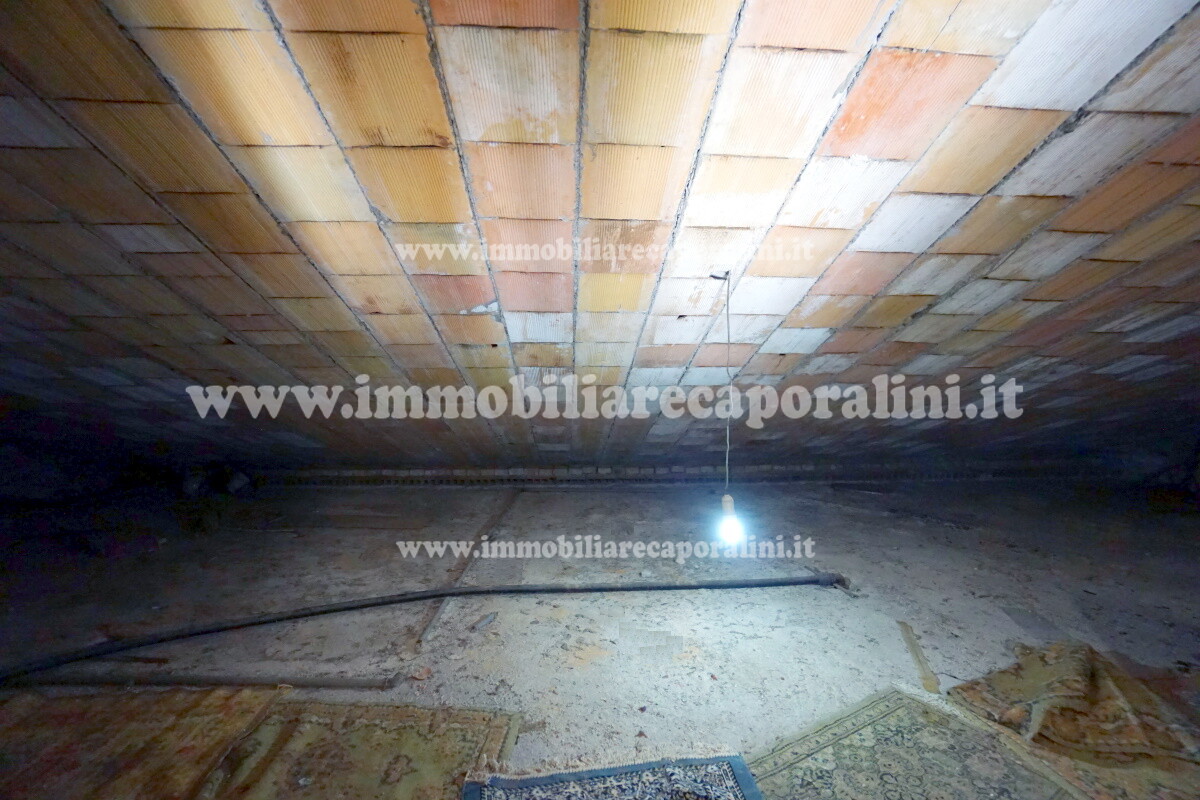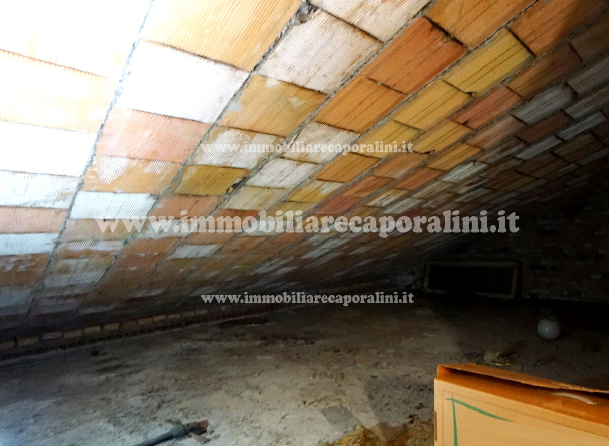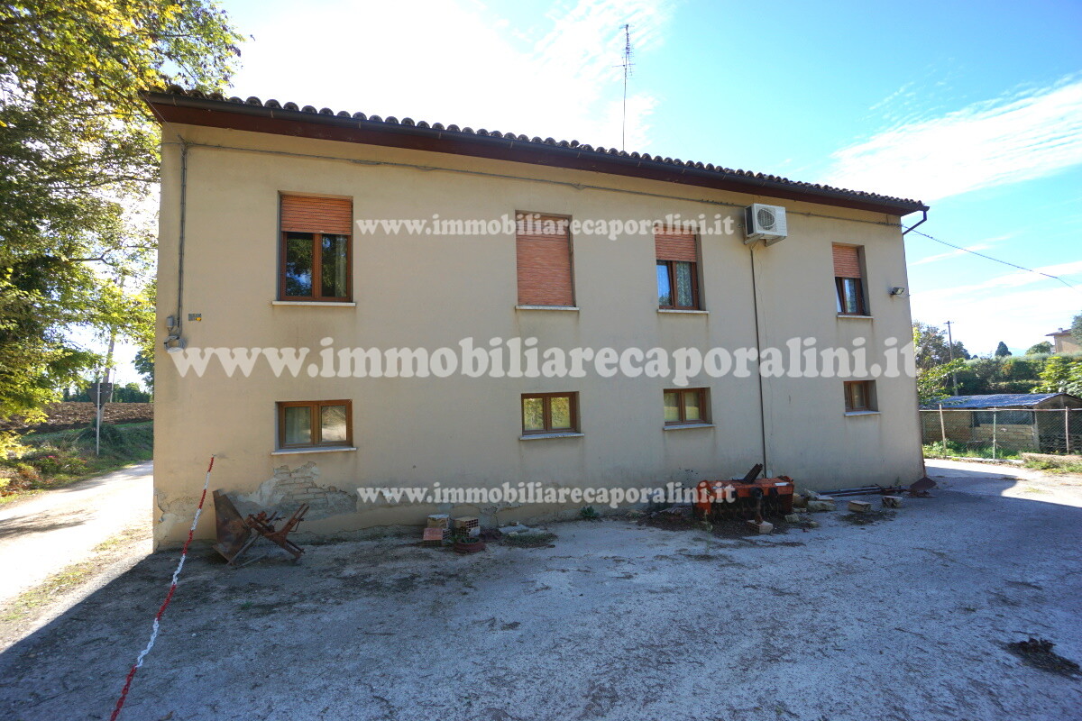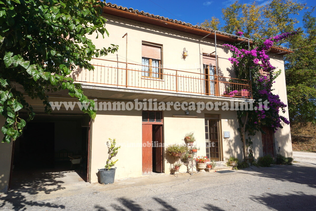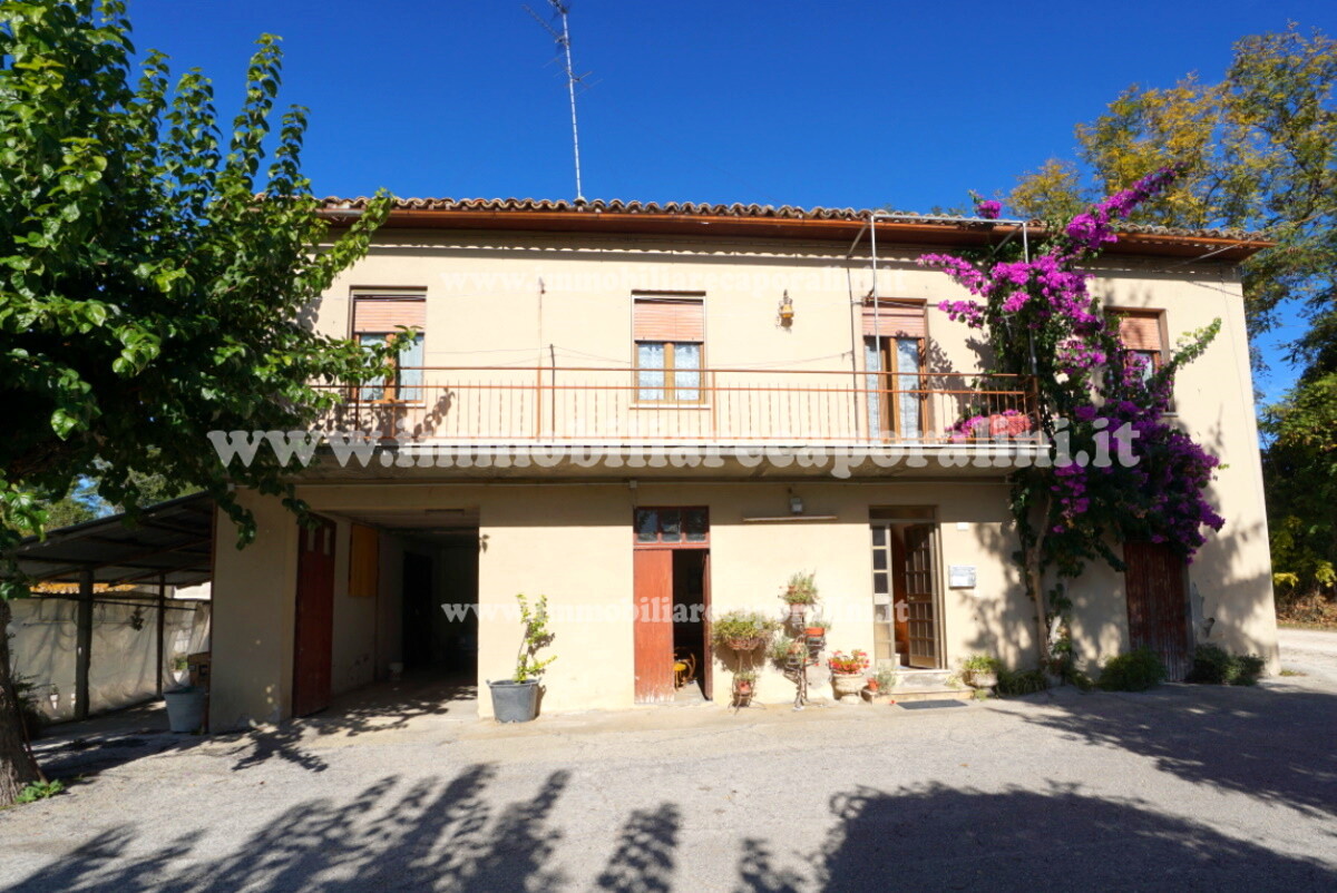 L’Agenzia Immobiliare Caporalini propone in vendita a Montecassiano (MC): casa colonica su tre (3) piani, composta da abitazione al piano primo (1) di circa 145 mq con balcone di circa 15 mq, con soffitta al piano secondo (2) di circa 145 mq (con altezza centrale h Max 1,50 mt), con 2 vani uso ripostiglio/deposito al piano terra (T) di complessivi circa 40 mq, più ampio garage al piano terra (T) di circa 100 mq con annesso w.c., più accessori esterni adibiti ad uso deposito e tettoie al piano terra (T) di complessivi circa 110 mq, il tutto comprensivo di corte esclusiva esterna e frustolo di terreno agricolo pianeggiante di circa 12500 mq. L’immobile è composto da: