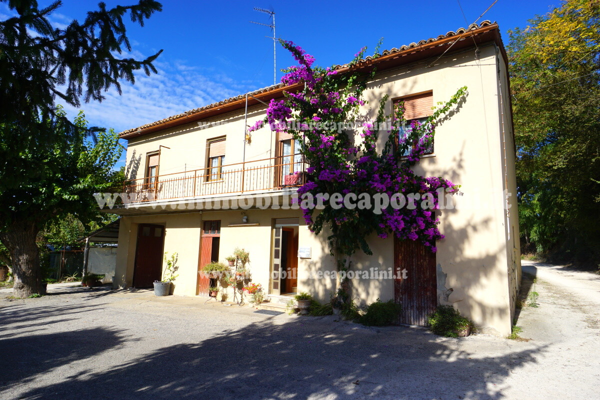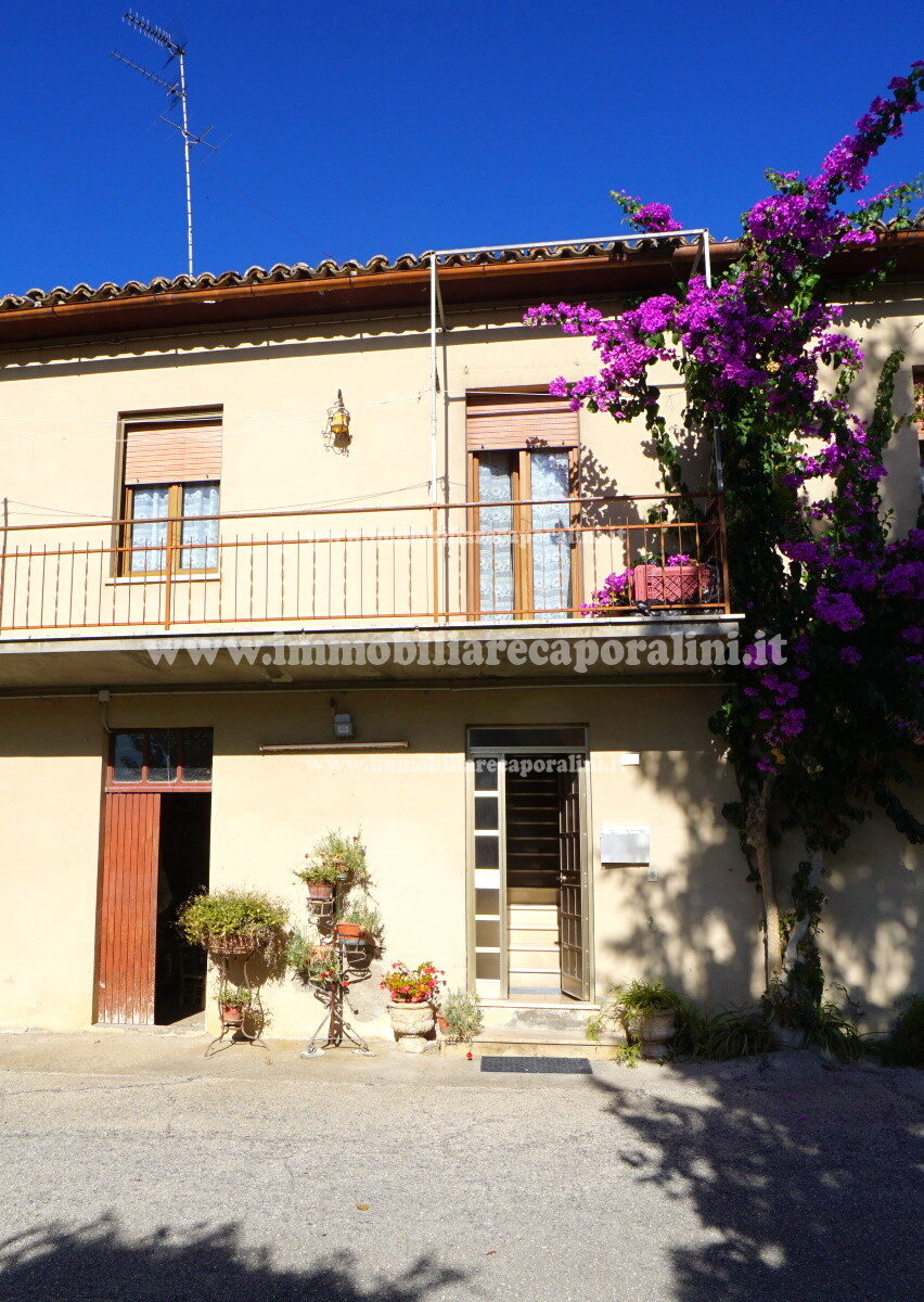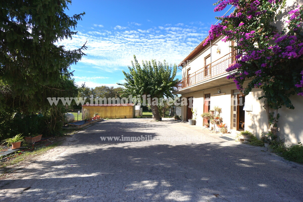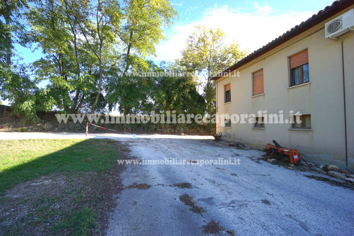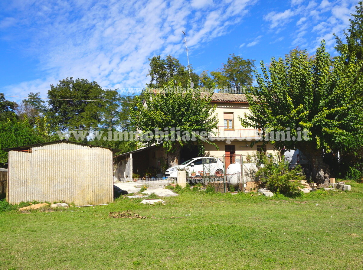L’Agenzia Immobiliare Caporalini propone in vendita a Montecassiano (MC): casa colonica su tre (3) piani, composta da abitazione al piano primo (1) di circa 145 mq con balcone di circa 15 mq, con soffitta al piano secondo (2) di circa 145 mq (con altezza centrale h Max 1,50 mt), con 2 vani uso ripostiglio/deposito al piano terra (T) di complessivi circa 40 mq, più ampio garage al piano terra (T) di circa 100 mq con annesso w.c., più accessori esterni adibiti ad uso deposito e tettoie al piano terra (T) di complessivi circa 110 mq, il tutto comprensivo di corte esclusiva esterna e frustolo di terreno agricolo pianeggiante di circa 12500 mq. L’immobile è composto da: