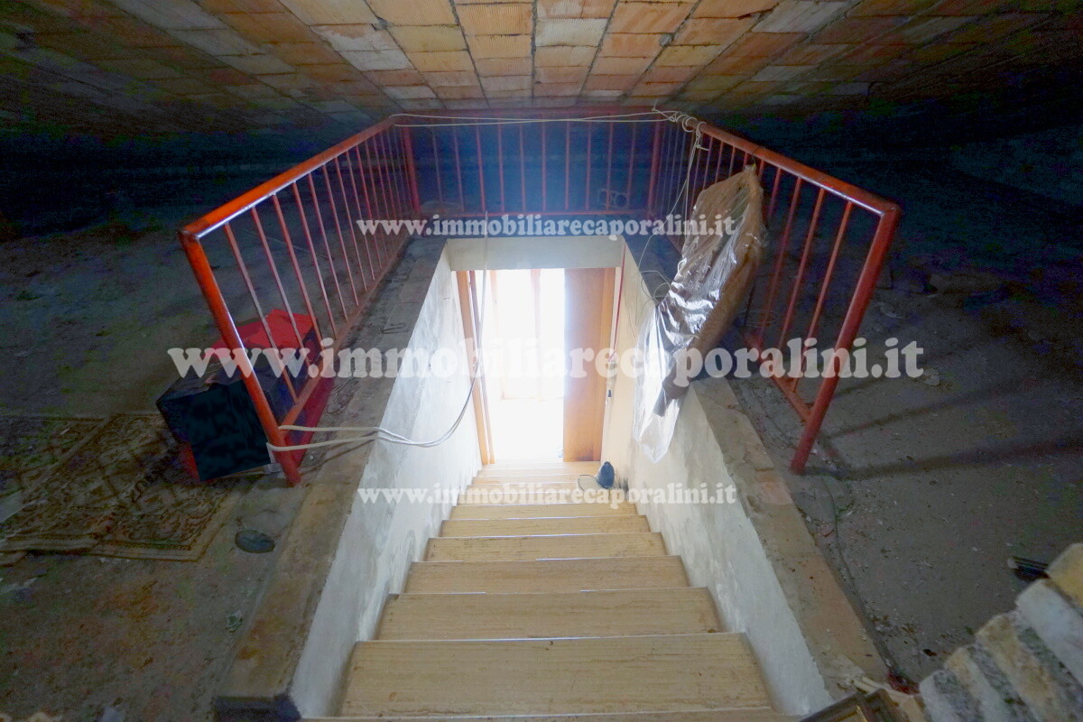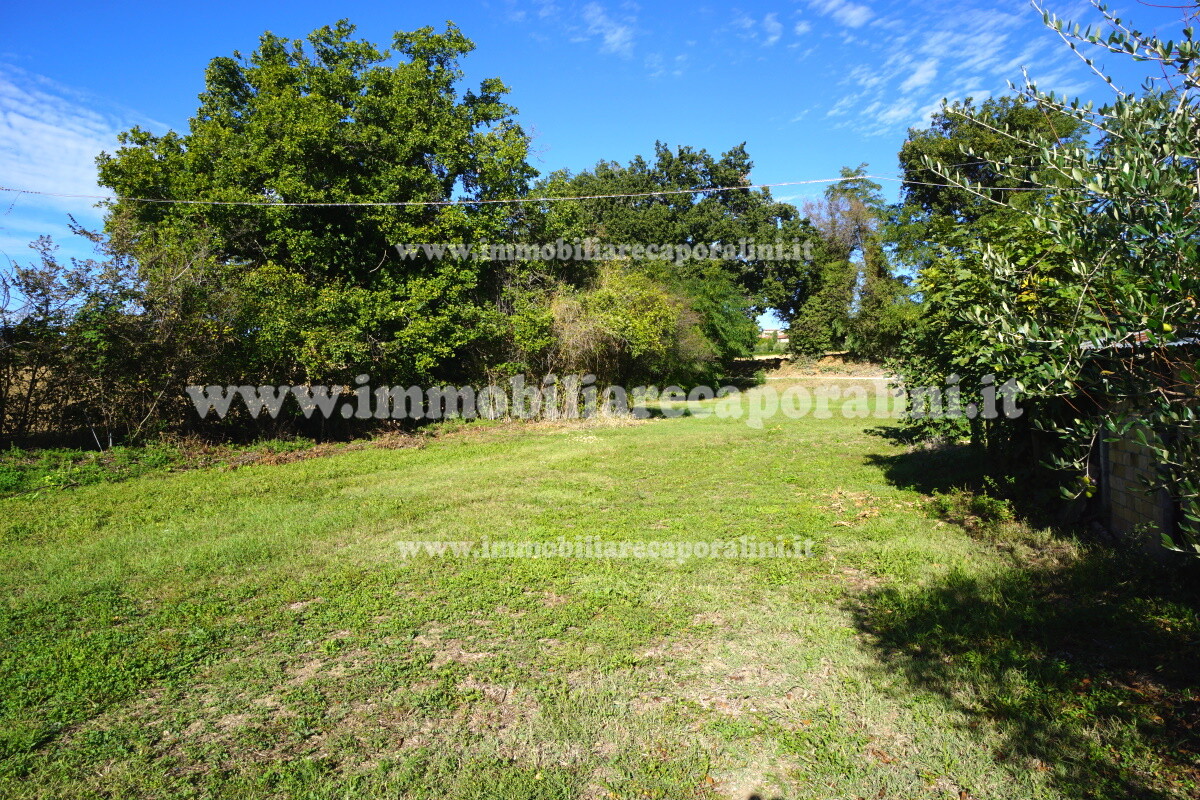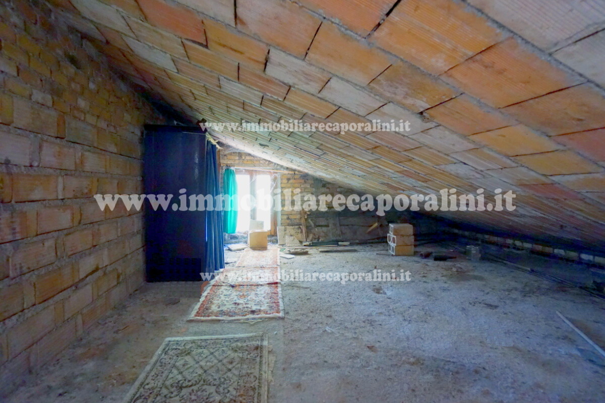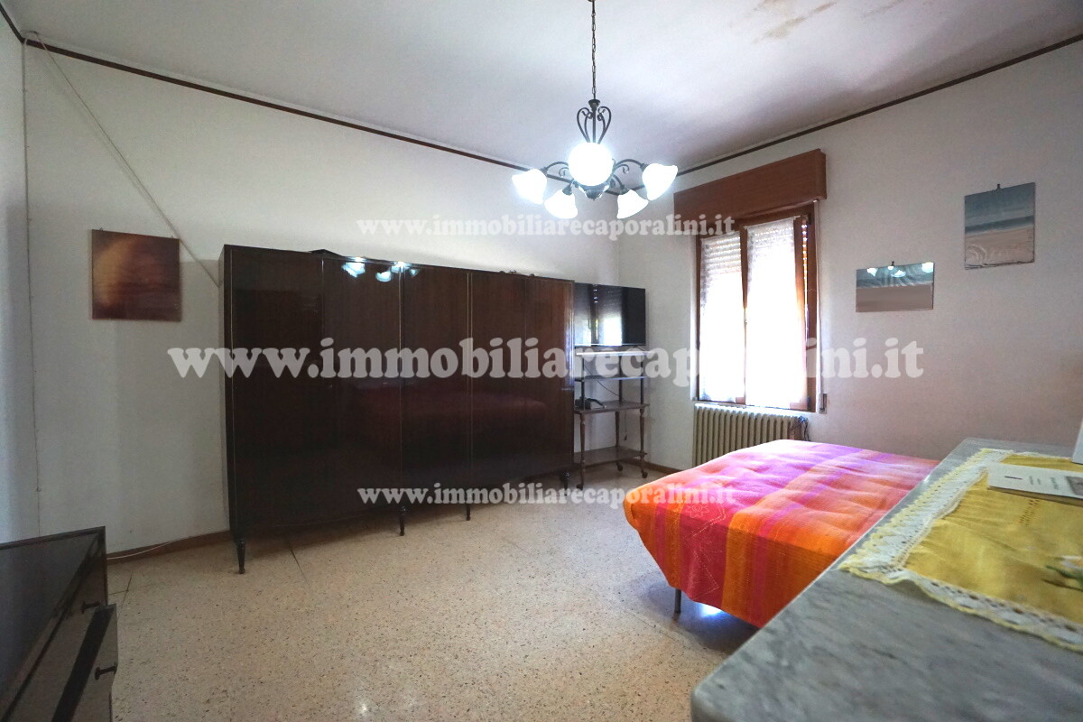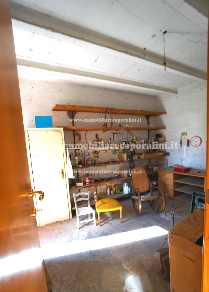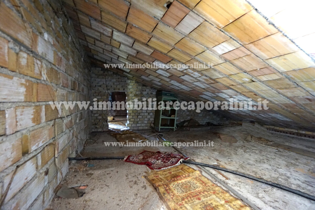 L’Agenzia Immobiliare Caporalini propone in vendita a Montecassiano (MC): casa colonica su tre (3) piani, composta da abitazione al piano primo (1) di circa 145 mq con balcone di circa 15 mq, con soffitta al piano secondo (2) di circa 145 mq (con altezza centrale h Max 1,50 mt), con 2 vani uso ripostiglio/deposito al piano terra (T) di complessivi circa 40 mq, più ampio garage al piano terra (T) di circa 100 mq con annesso w.c., più accessori esterni adibiti ad uso deposito e tettoie al piano terra (T) di complessivi circa 110 mq, il tutto comprensivo di corte esclusiva esterna e frustolo di terreno agricolo pianeggiante di circa 12500 mq. L’immobile è composto da: