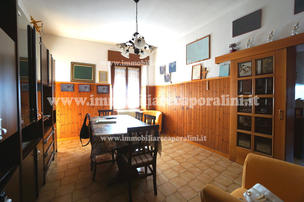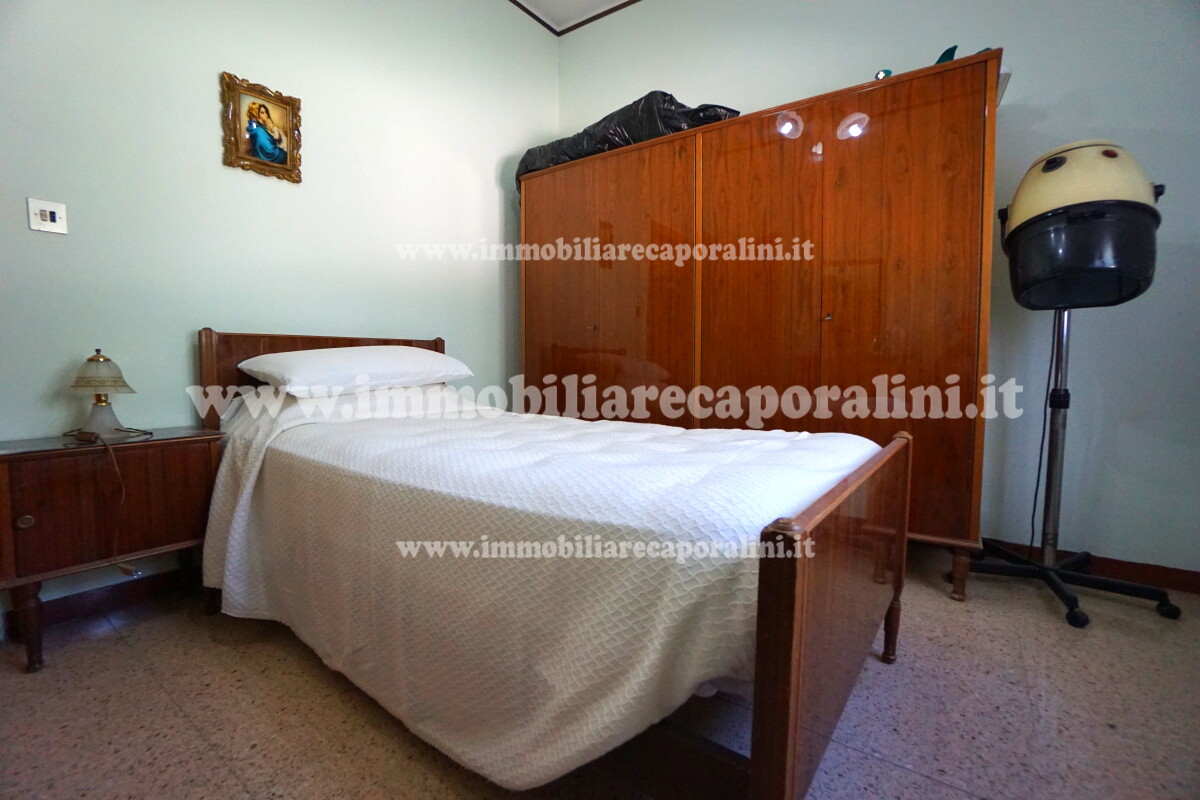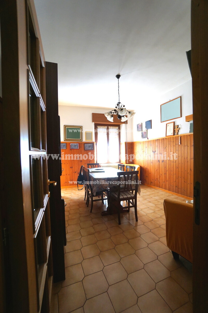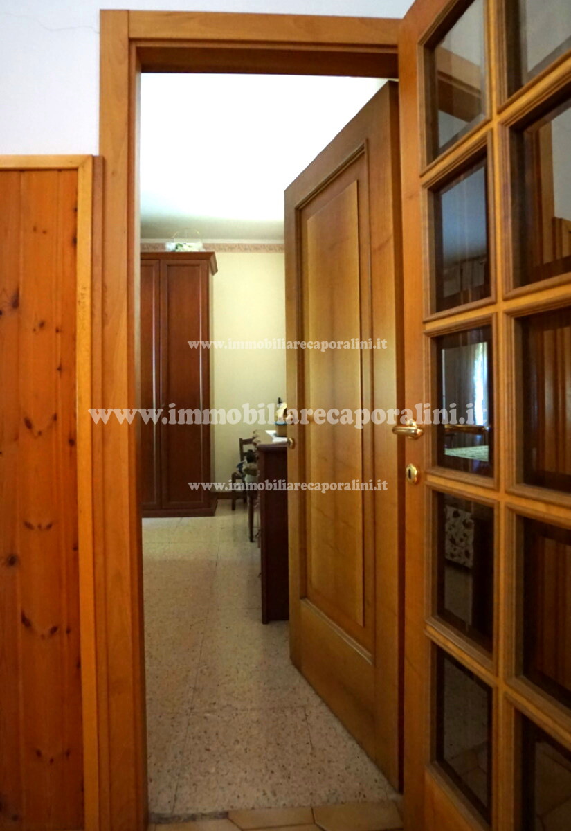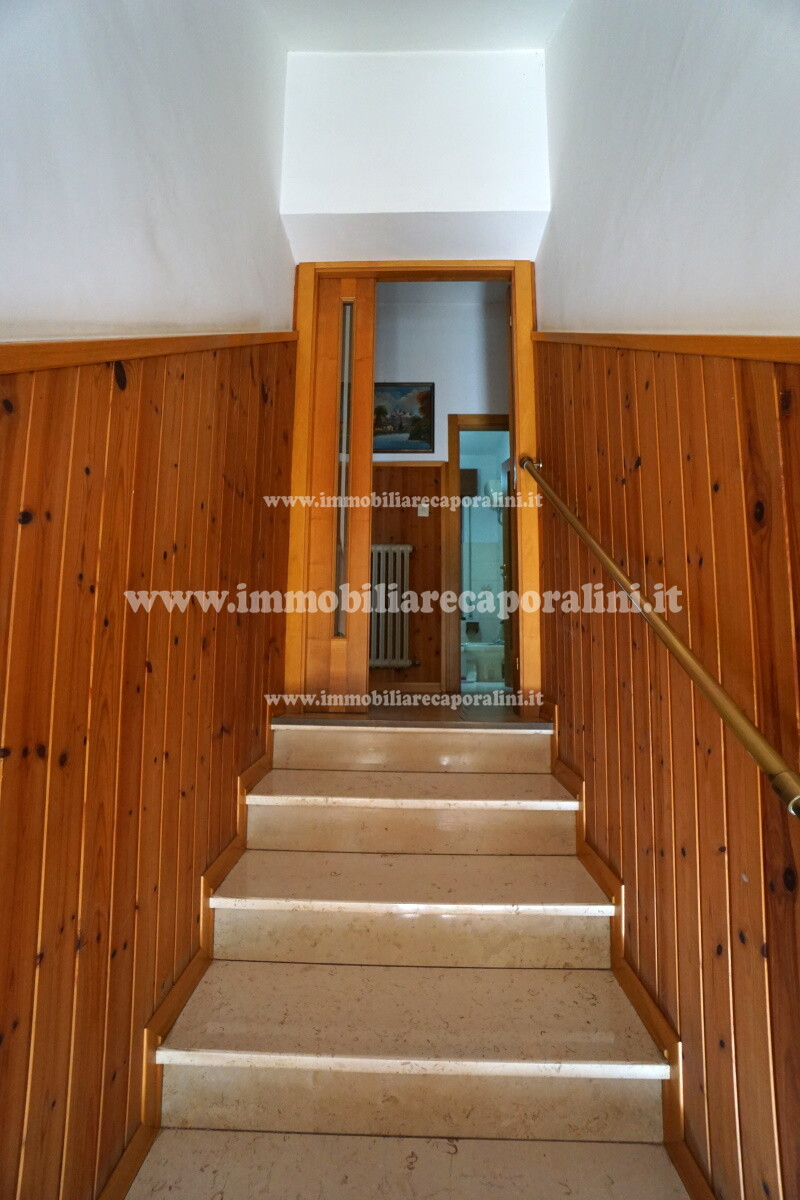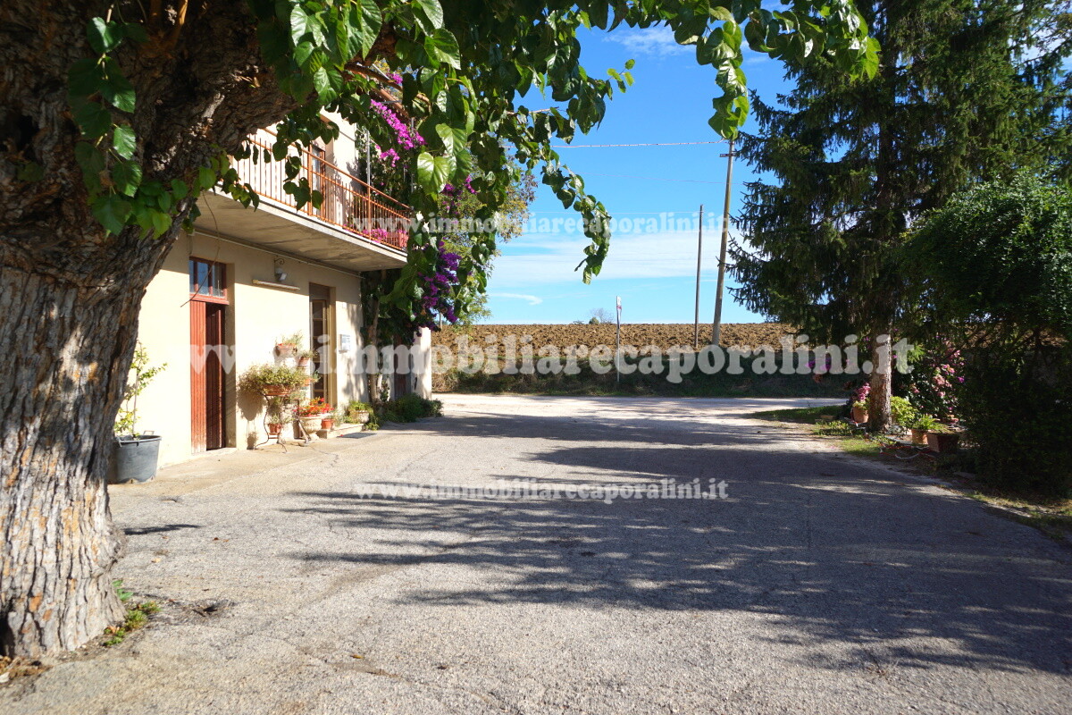 L’Agenzia Immobiliare Caporalini propone in vendita a Montecassiano (MC): casa colonica su tre (3) piani, composta da abitazione al piano primo (1) di circa 145 mq con balcone di circa 15 mq, con soffitta al piano secondo (2) di circa 145 mq (con altezza centrale h Max 1,50 mt), con 2 vani uso ripostiglio/deposito al piano terra (T) di complessivi circa 40 mq, più ampio garage al piano terra (T) di circa 100 mq con annesso w.c., più accessori esterni adibiti ad uso deposito e tettoie al piano terra (T) di complessivi circa 110 mq, il tutto comprensivo di corte esclusiva esterna e frustolo di terreno agricolo pianeggiante di circa 12500 mq. L’immobile è composto da: