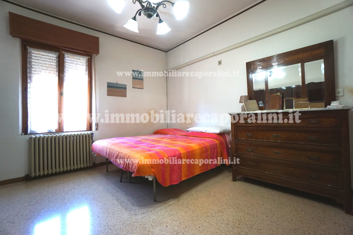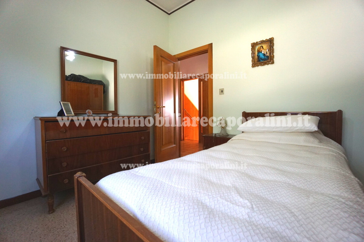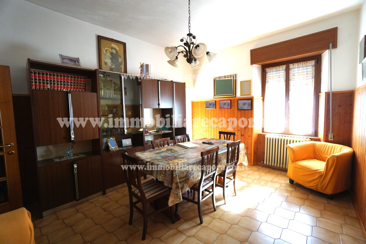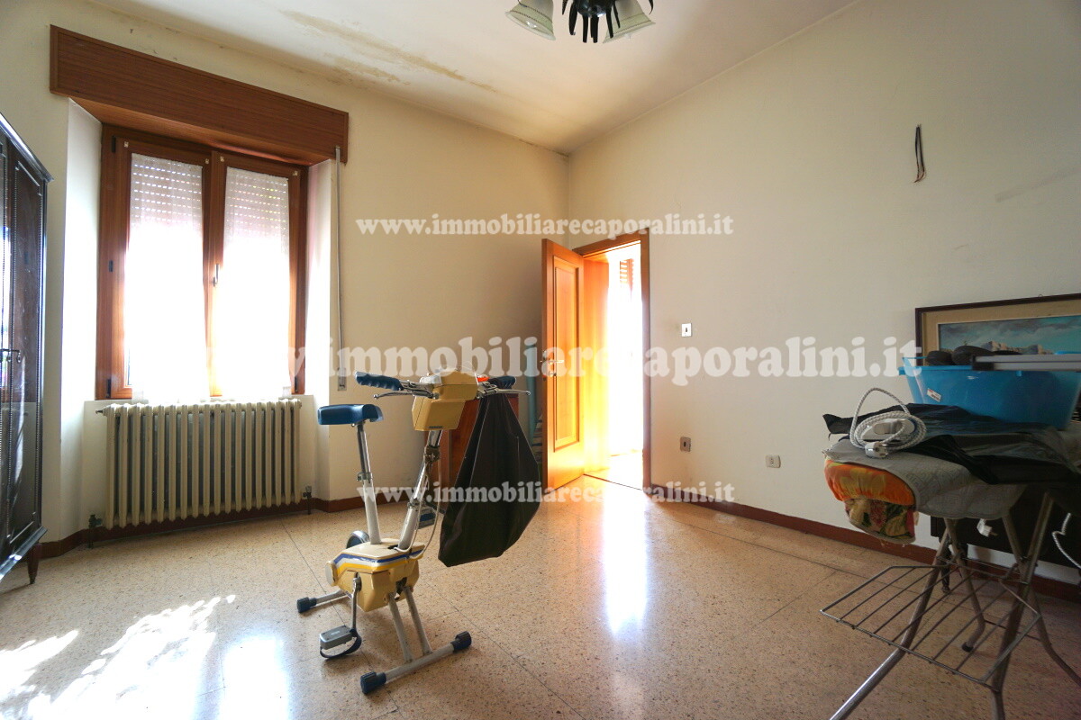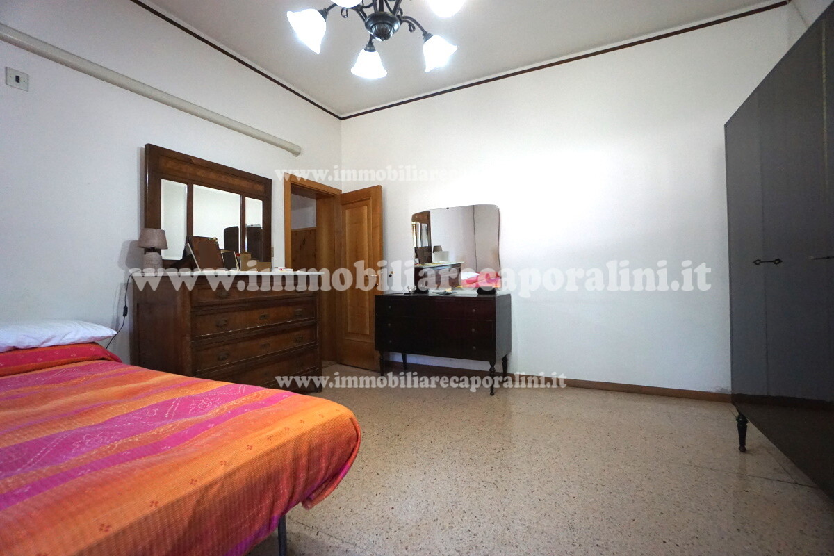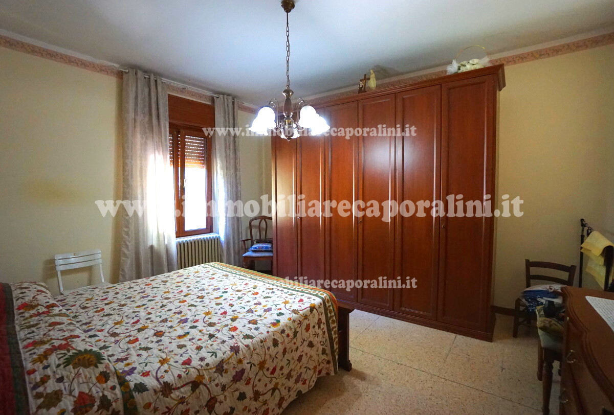 L’Agenzia Immobiliare Caporalini propone in vendita a Montecassiano (MC): casa colonica su tre (3) piani, composta da abitazione al piano primo (1) di circa 145 mq con balcone di circa 15 mq, con soffitta al piano secondo (2) di circa 145 mq (con altezza centrale h Max 1,50 mt), con 2 vani uso ripostiglio/deposito al piano terra (T) di complessivi circa 40 mq, più ampio garage al piano terra (T) di circa 100 mq con annesso w.c., più accessori esterni adibiti ad uso deposito e tettoie al piano terra (T) di complessivi circa 110 mq, il tutto comprensivo di corte esclusiva esterna e frustolo di terreno agricolo pianeggiante di circa 12500 mq. L’immobile è composto da: