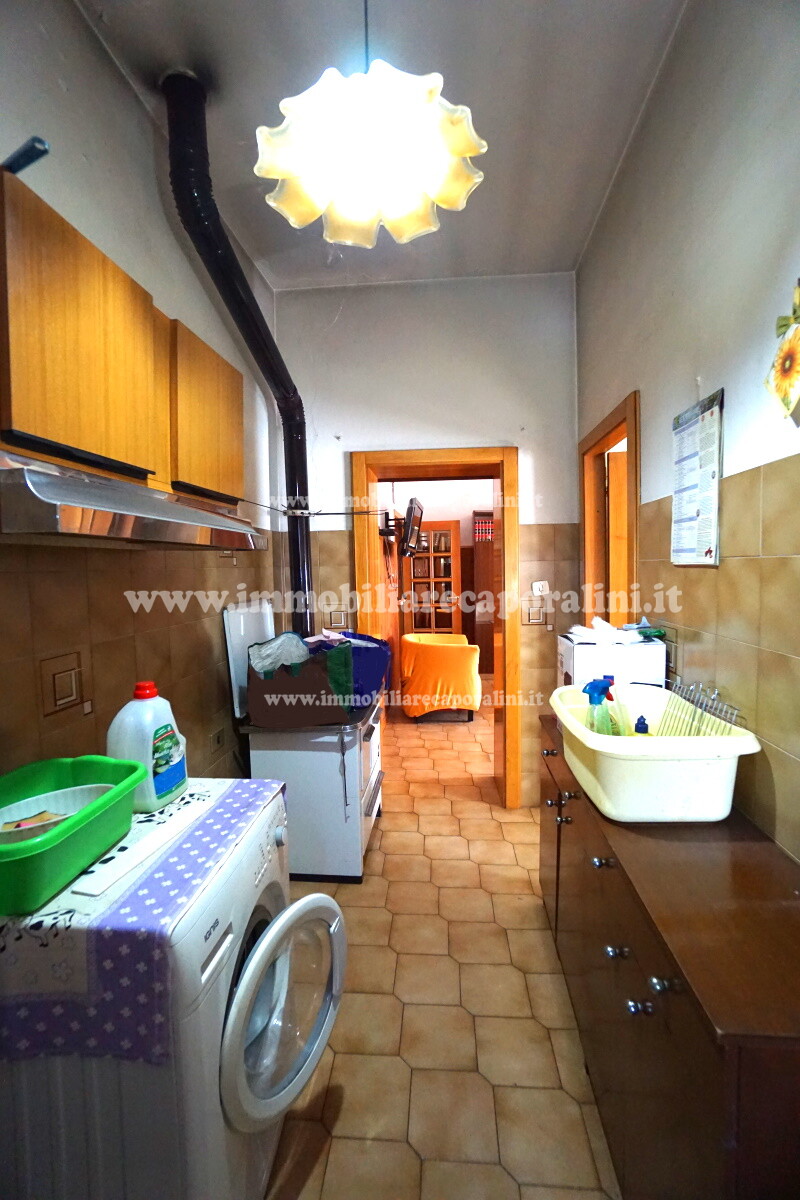 L’abitazione al piano primo (1) è dotata di: impianto di riscaldamento termo-autonomo con termosifoni in ghisa ed alimentazione a gpl; infissi in PVC; pavimentazioni e rivestimenti in graniglia di marmo, gres-porcellanato e ceramica; climatizzatore estate/inverno nel disimpegno zona giorno/notte; stufa a legna in cucina; bagno al piano piano primo (1) con piatto doccia. All’interno del garage è presente un w.c./lavanderia con piatto doccia. Immobile da rivedere internamente e/o ristrutturare. In attesa di APE. Ottima posizione semi-centrale, a poca distanza dal centro cittadino e dai servizi. Buone condizioni. Occasione!