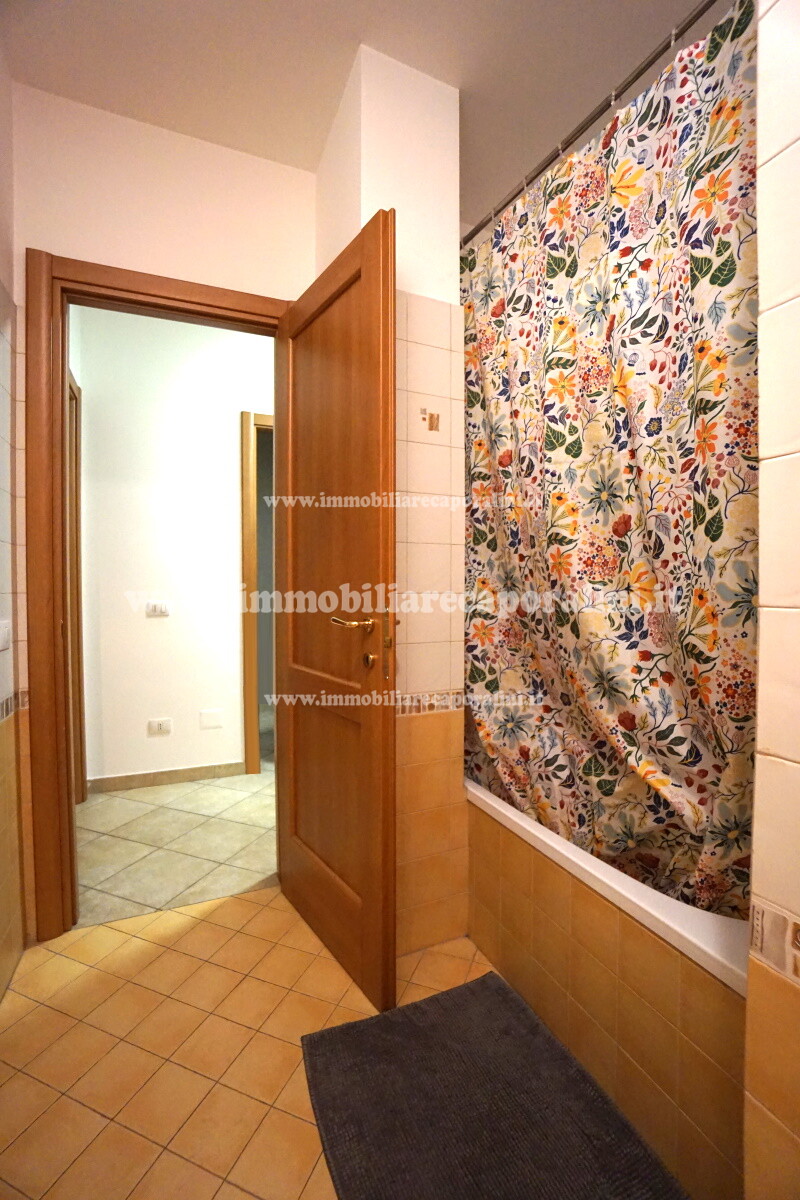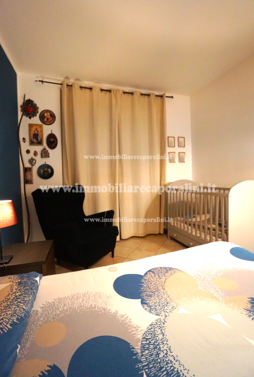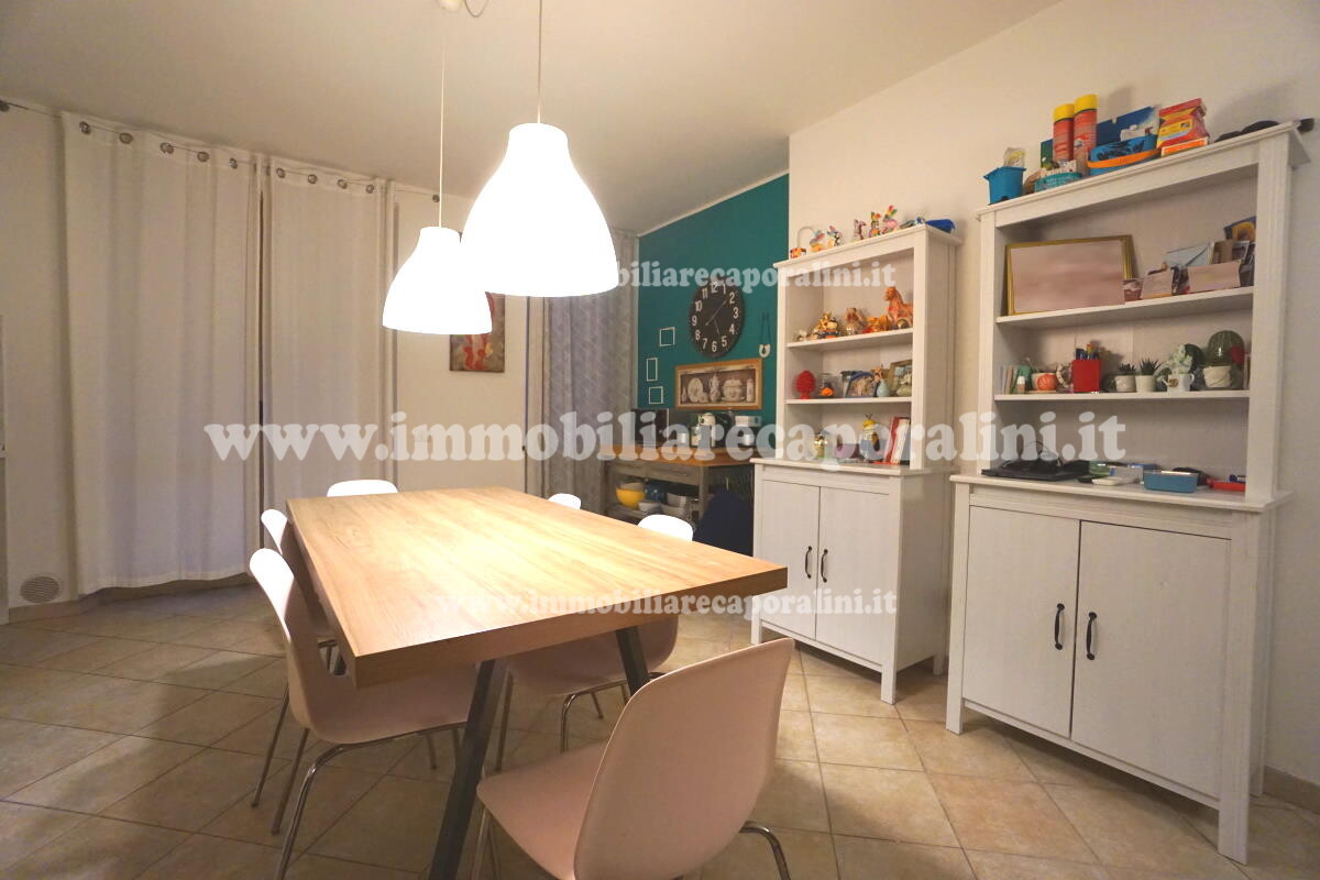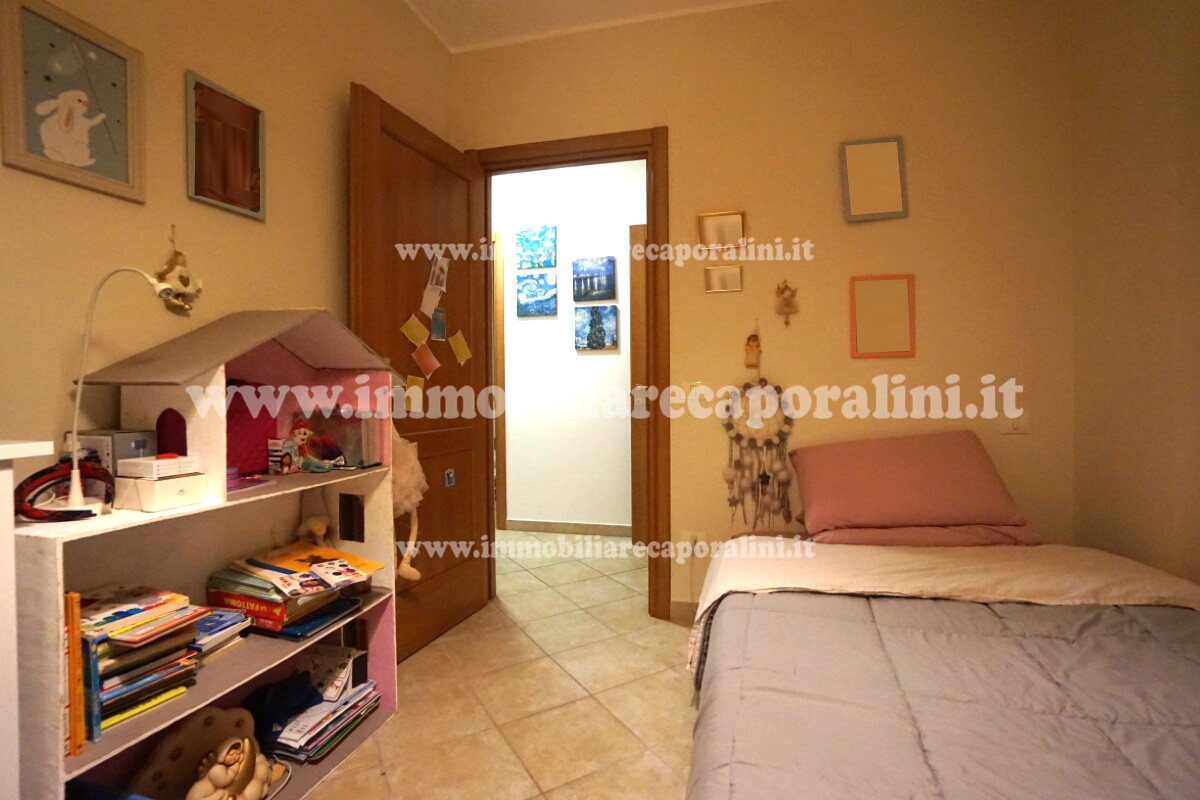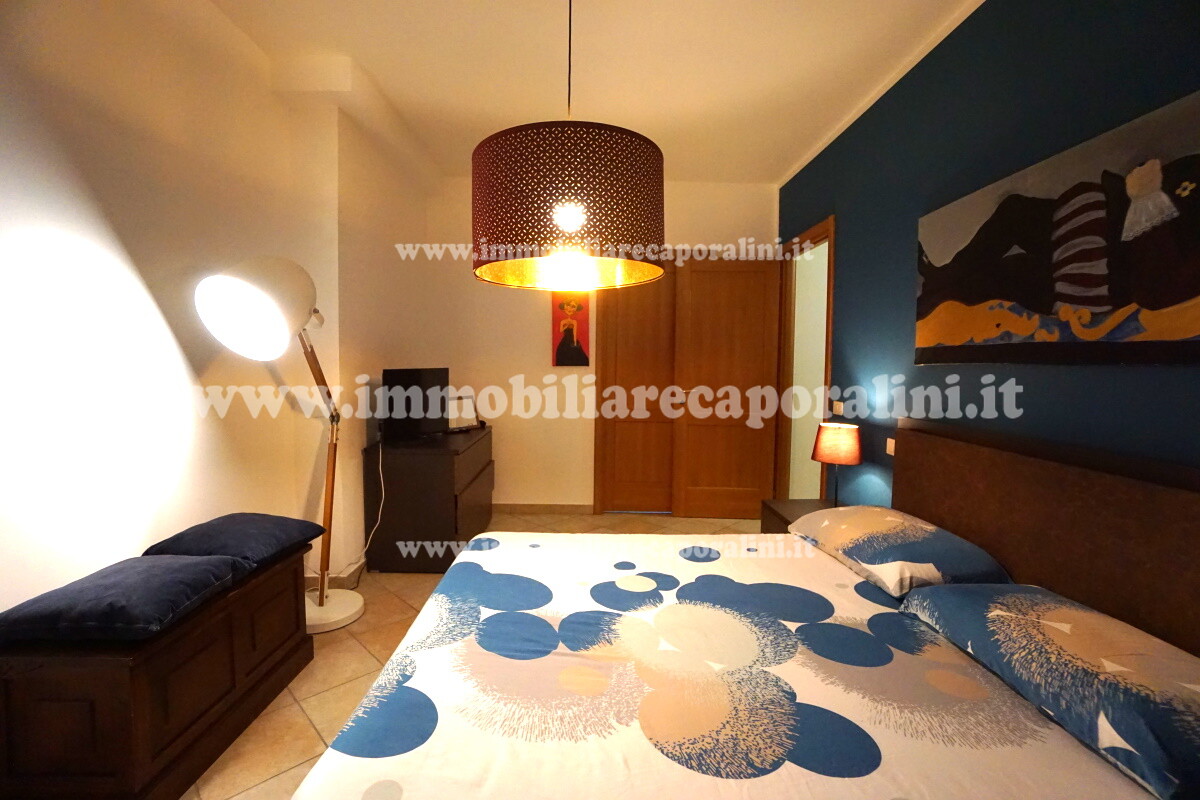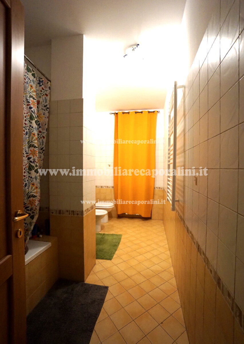 L’Agenzia Immobiliare Caporalini propone in vendita a Montecassiano (MC): appartamento semi-nuovo di circa 93 mq al piano secondo (2) con garage di circa 18 mq al piano primo (1). L’immobile è composto da: ingresso, zona cucina-soggiorno (open-space) con balcone di circa 4,5 mq, disimpegno zona-notte, 1 camera matrimoniale con bagno di servizio e balcone di circa 4,5 mq, 1 camera singola, 1 bagno, 1 ripostiglio e 1 garage. L’immobile è dotato di: impianto di riscaldamento termoautonomo con caldaia a condensazione a metano e termosifoni; infissi in alluminio con vetro-camera termica e persiane in alluminio; pavimentazioni e rivestimenti in gres-porcellanato e ceramica; portoncino blindato; bagno principale con vasca; bagno di servizio in camera con piatto-doccia; ripostiglio con spazio dedicato per lavatrice/asciugatrice; climatizzatore estate/inverno in zona soggiorno-cucina. Il vano adibito a bagno di servizio in camera matrimoniale può essere utilizzato come cabina-armadio. Palazzina dotata di ascensore. Costruzione antisismica con struttura portante in cemento armato. In attesa di APE. L’immobile si trova in ottime condizioni! Zona residenziale e servita; a poca distanza dal centro cittadino. Occasione!