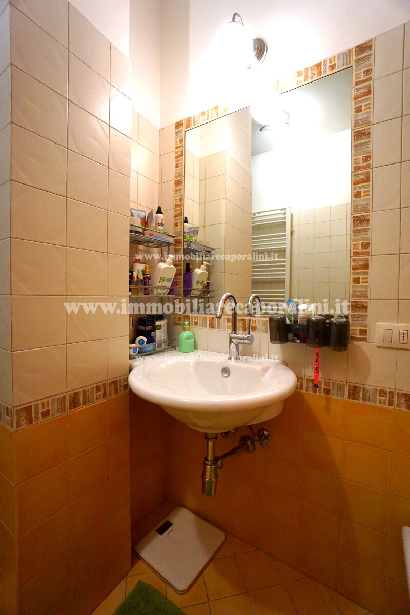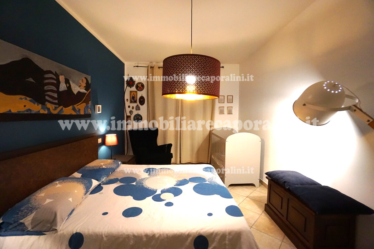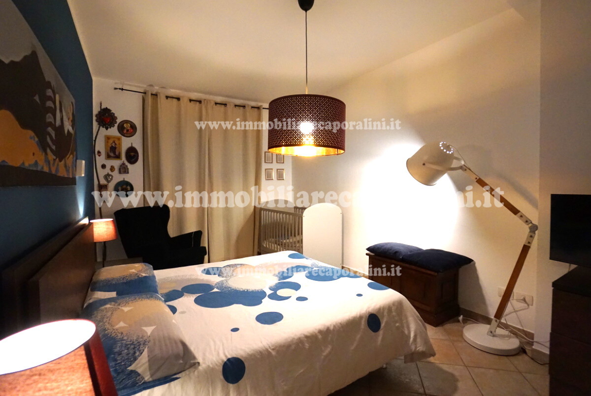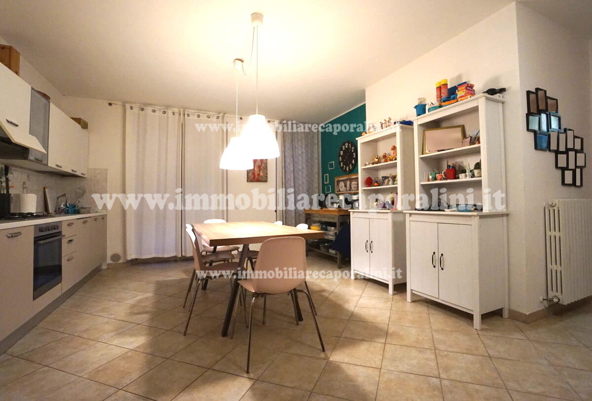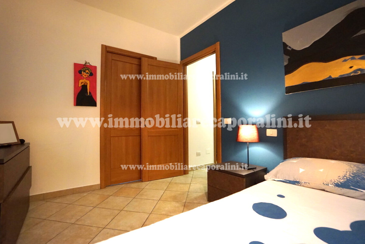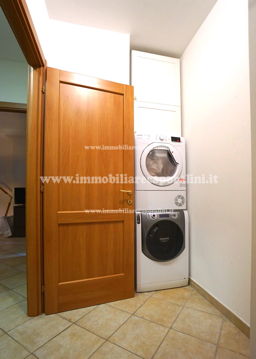 L’Agenzia Immobiliare Caporalini propone in vendita a Montecassiano (MC): appartamento semi-nuovo di circa 93 mq al piano secondo (2) con garage di circa 18 mq al piano primo (1). L’immobile è composto da: ingresso, zona cucina-soggiorno (open-space) con balcone di circa 4,5 mq, disimpegno zona-notte, 1 camera matrimoniale con bagno di servizio e balcone di circa 4,5 mq, 1 camera singola, 1 bagno, 1 ripostiglio e 1 garage. L’immobile è dotato di: impianto di riscaldamento termoautonomo con caldaia a condensazione a metano e termosifoni; infissi in alluminio con vetro-camera termica e persiane in alluminio; pavimentazioni e rivestimenti in gres-porcellanato e ceramica; portoncino blindato; bagno principale con vasca; bagno di servizio in camera con piatto-doccia; ripostiglio con spazio dedicato per lavatrice/asciugatrice; climatizzatore estate/inverno in zona soggiorno-cucina. Il vano adibito a bagno di servizio in camera matrimoniale può essere utilizzato come cabina-armadio. Palazzina dotata di ascensore. Costruzione antisismica con struttura portante in cemento armato. In attesa di APE. L’immobile si trova in ottime condizioni! Zona residenziale e servita; a poca distanza dal centro cittadino. Occasione!